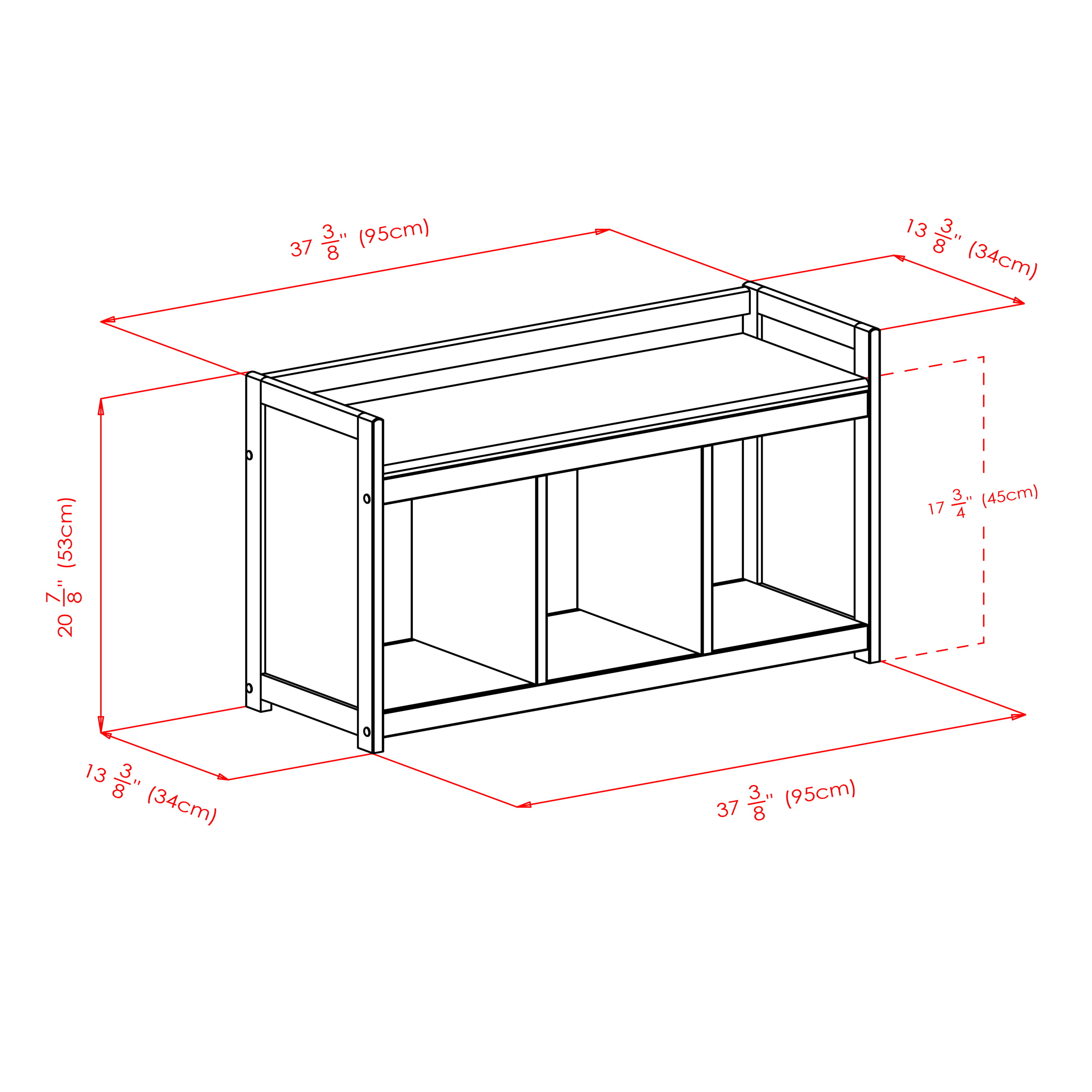 Bench - 37.4 x 13.5 x 20.87 INBench - 35.83 x 12.99 x 2.17 IN