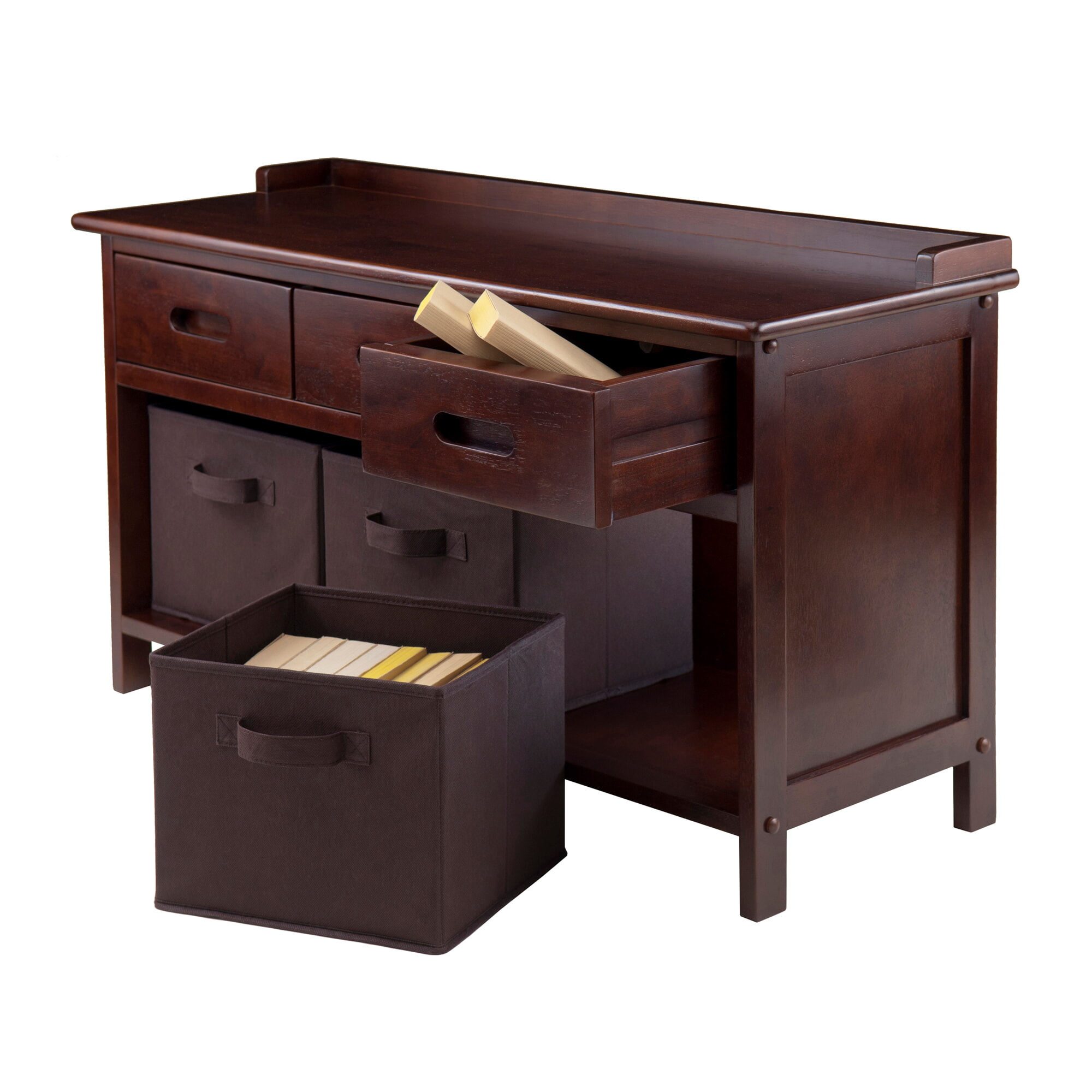 Adriana Storage Bench with 3 Drawers, 3 Fabric Baskets, 38 Wide, 22 High, Walnut and Chocolate