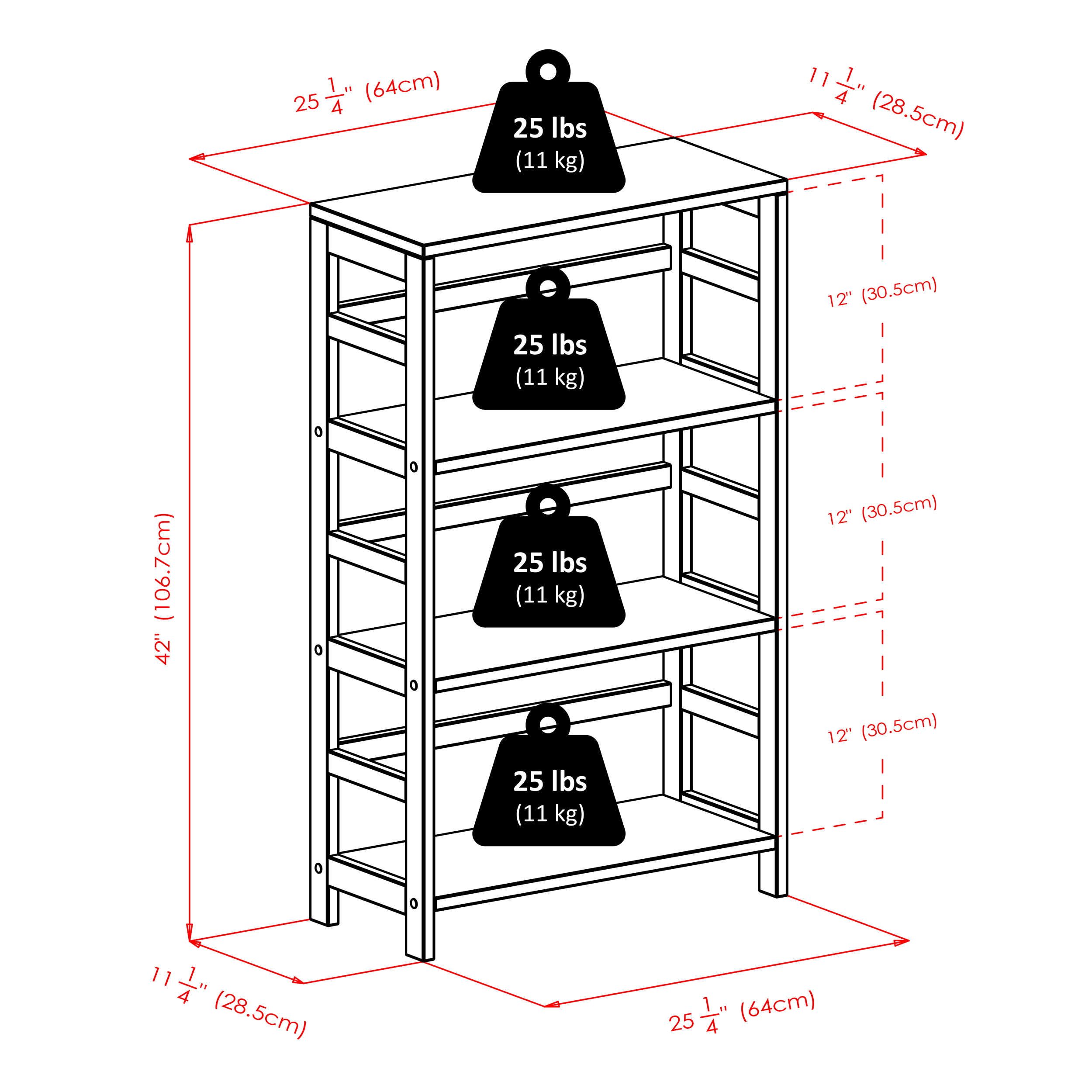 Basket - 10.06 x 10.97 x 9 INShelf - 25.2 x 11.22 x 42 IN