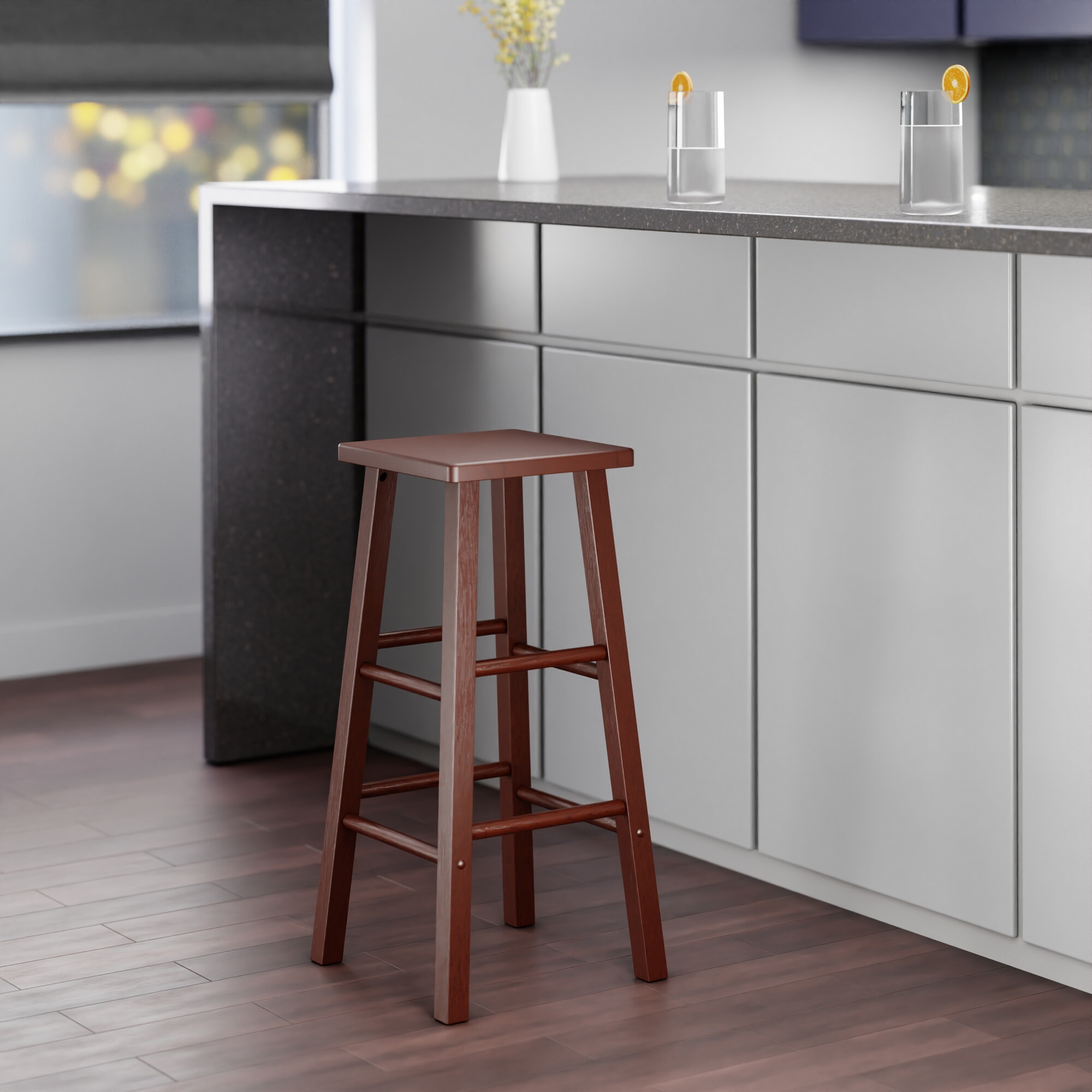Carrick Square Bar Stool with Footrests, 29' High, 14' Wide, Walnut