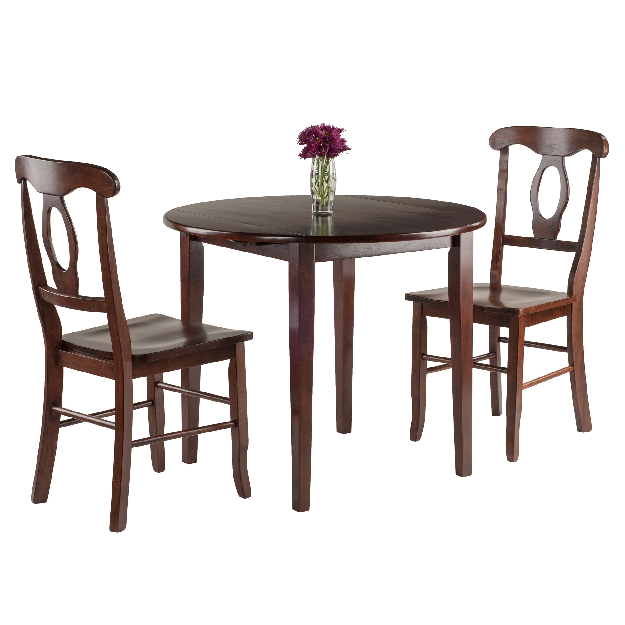 Clayton Extendable Dining Table with 2 Keyhole Back Chairs, 36' Wide, 29' High, Walnut