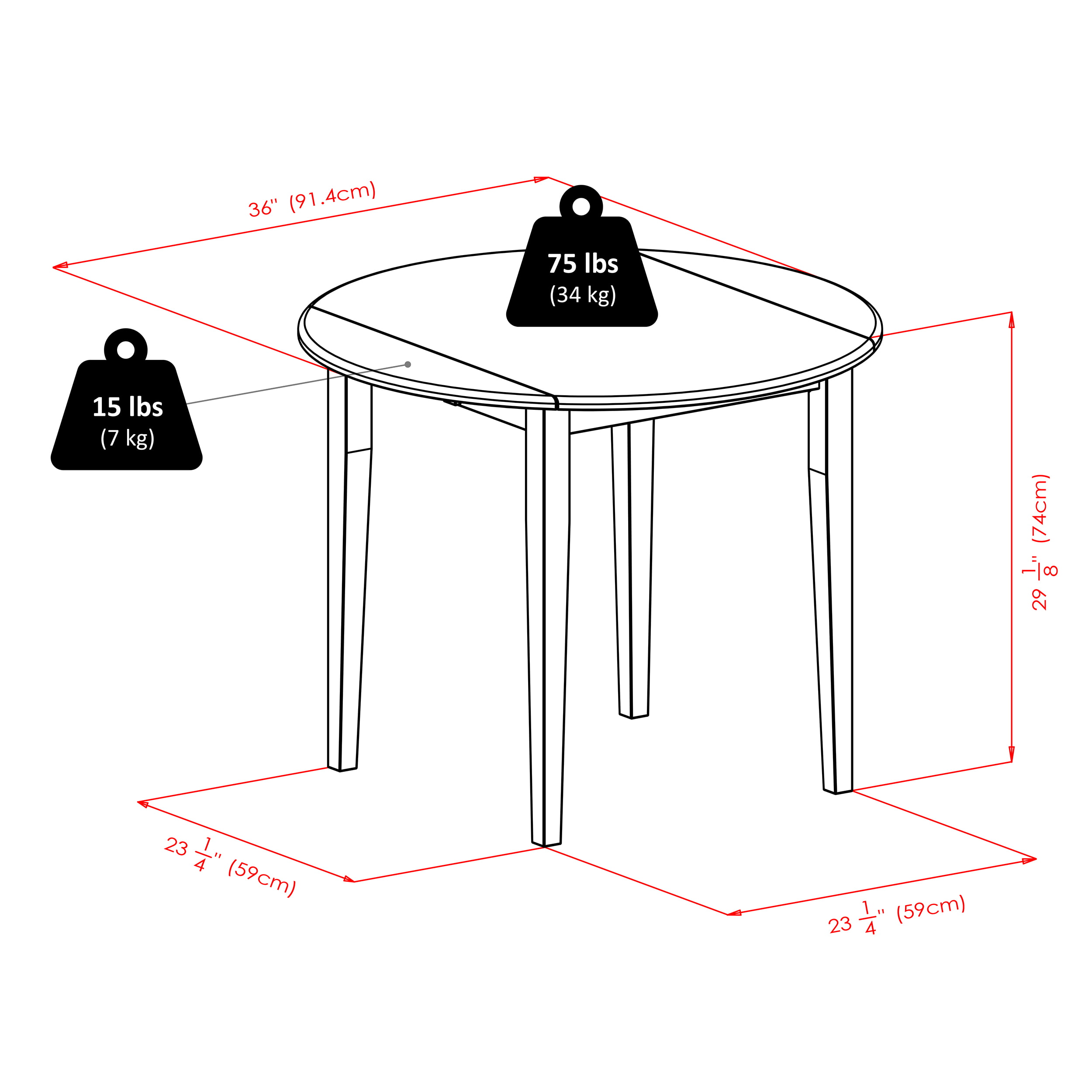 Table - 14.17 x 14.17 x 29.13 INChair - 6.83 x 8.32 x 36.65 IN
