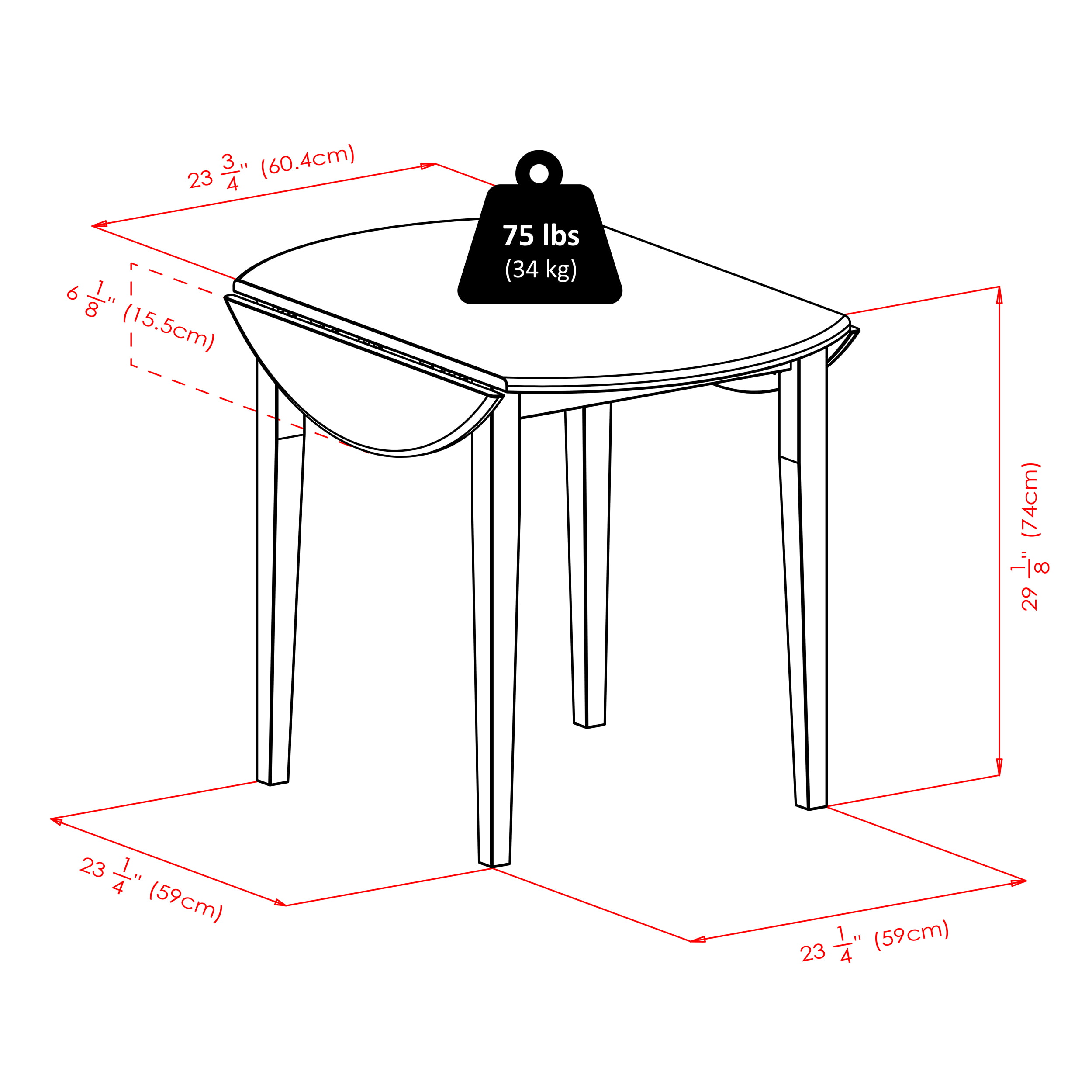 • Table sides can be folded open for additional tabletop space to accommodate guests, extra dishware, etc