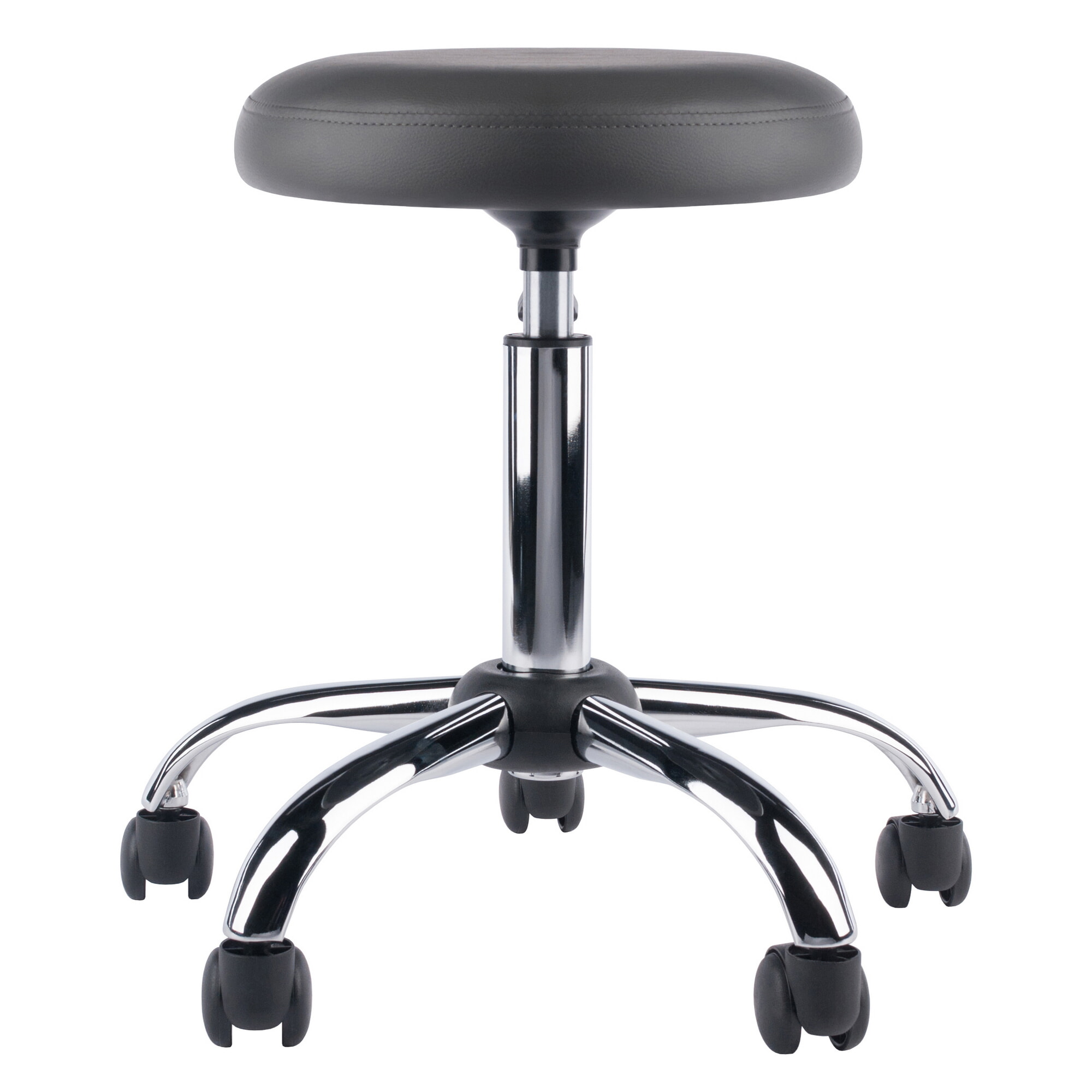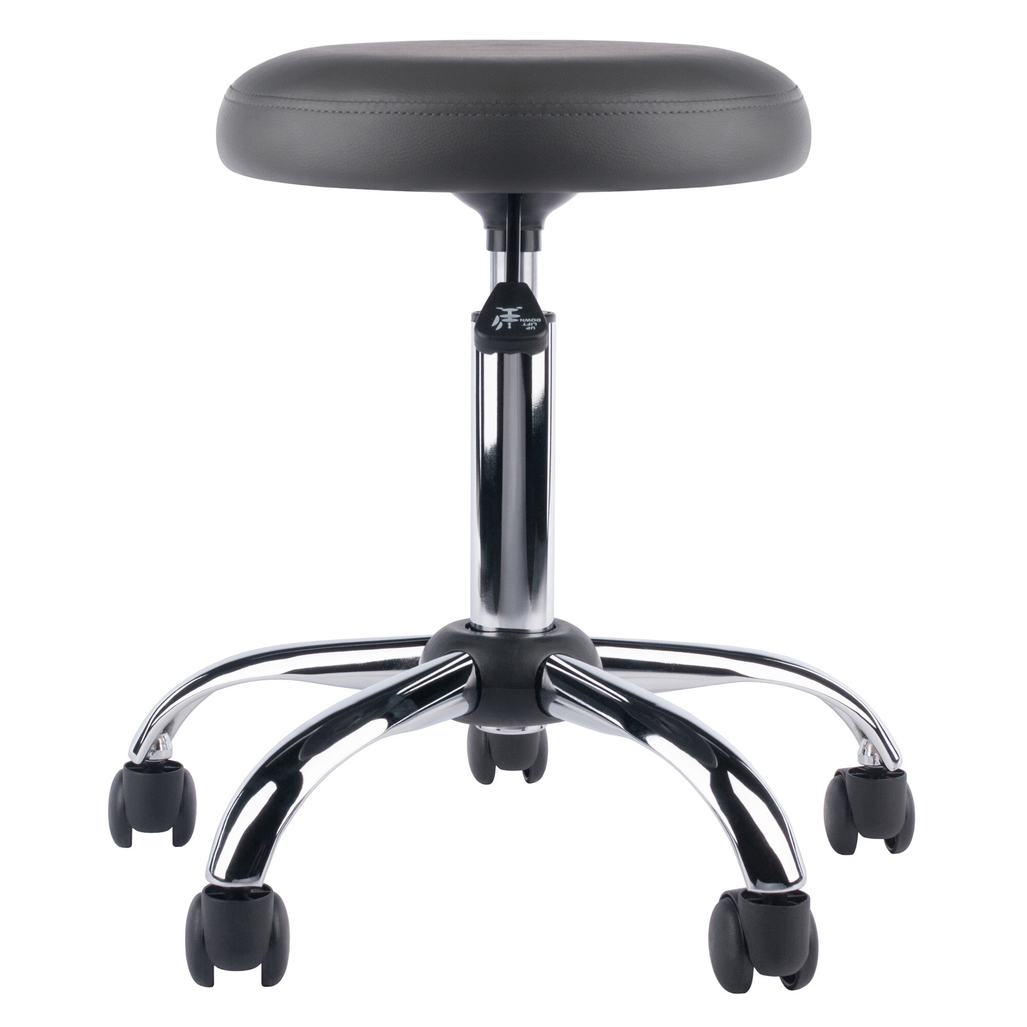 Clyde Tall Adjustable Swivel Stool with Round Cushion Seat and Wheels, 26' High, Charcoal/Chrome
