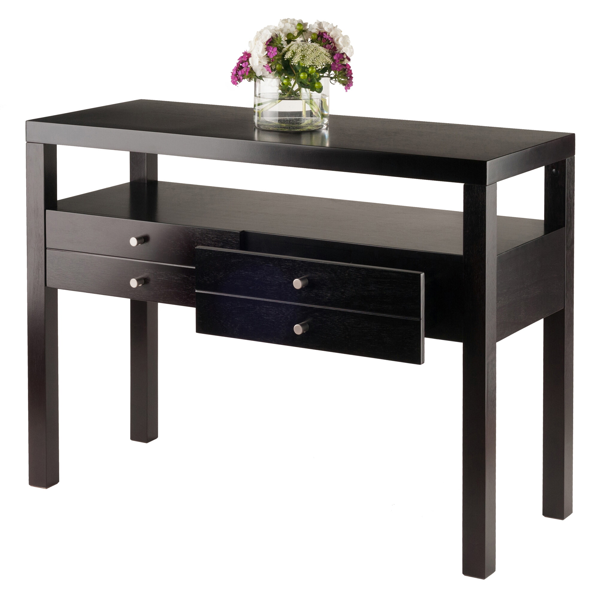 Copenhagen Console Table with Large Shelf and Drawers, 40' Wide, 30' High, Espresso
