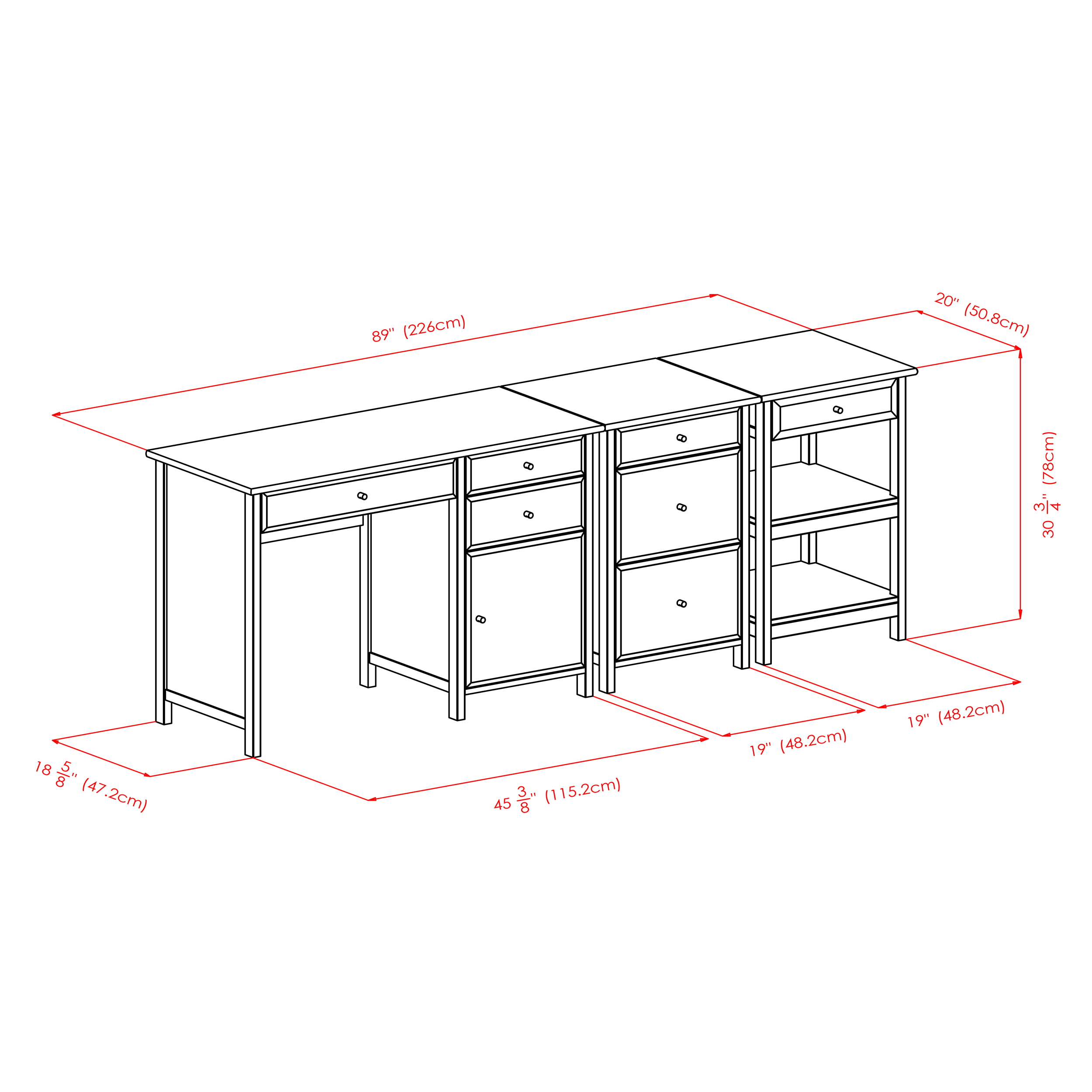 Cabinet - 20.87 x 20.24 x 30.71 INStand - 20.87 x 20.24 x 30.71 INDesk - 47.24 x 20.24 x 30.71 IN