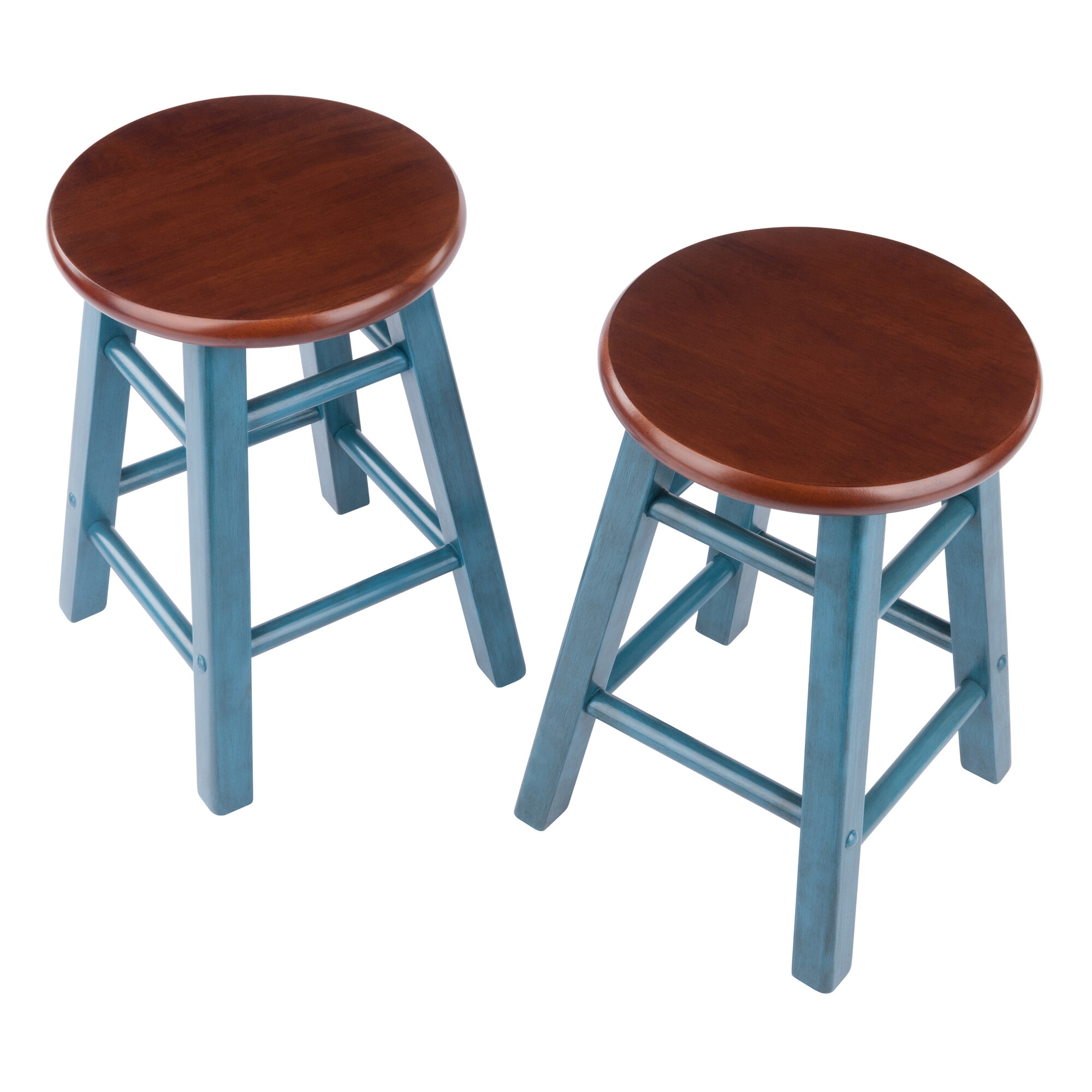 Element 2-Pc Square Legs Dining Stool Set, Walnut-Rustic Teal Finish
