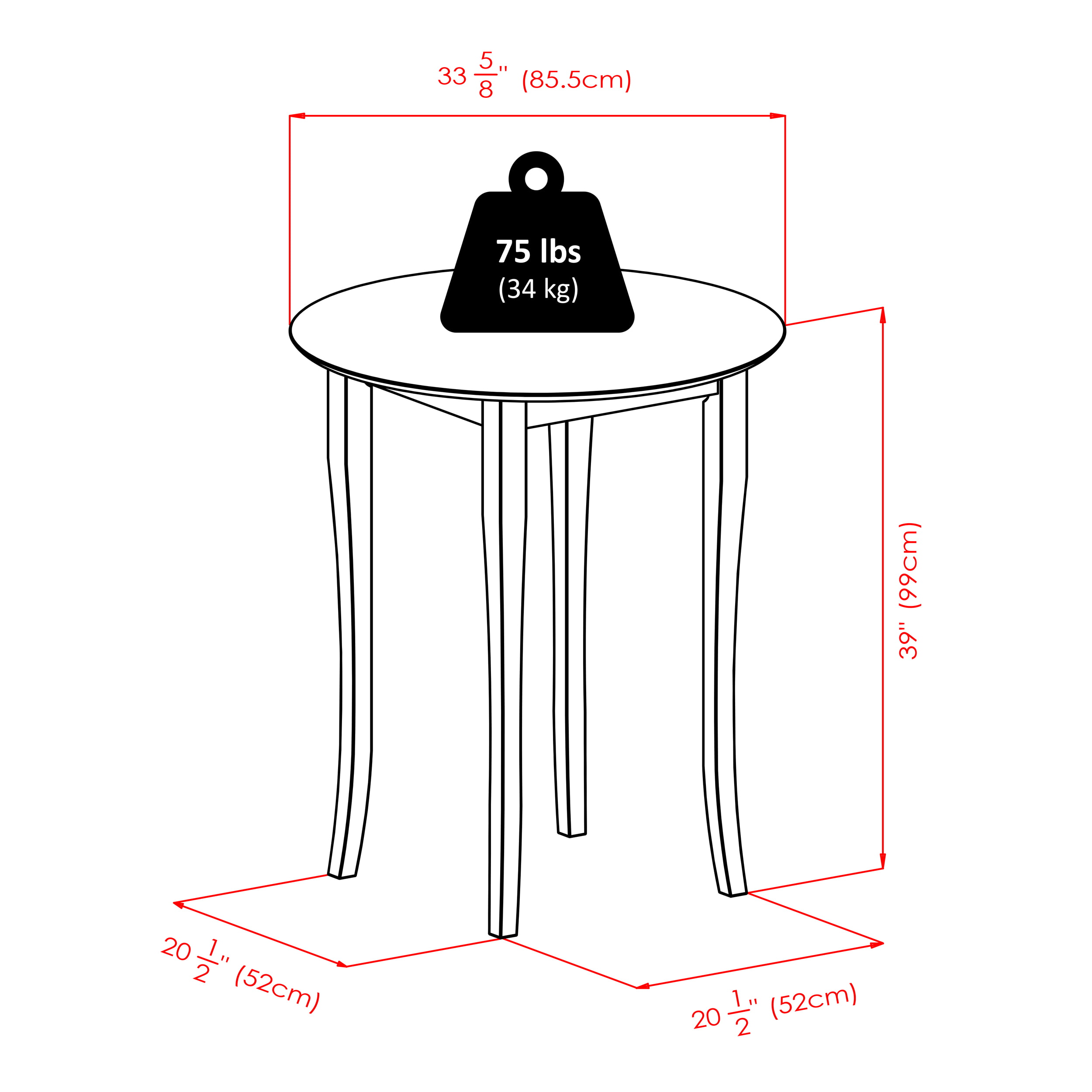 Table - 33.66 x 33.66 x 38.98 INStool - 16.97 x 16.97 x 30.24 IN
