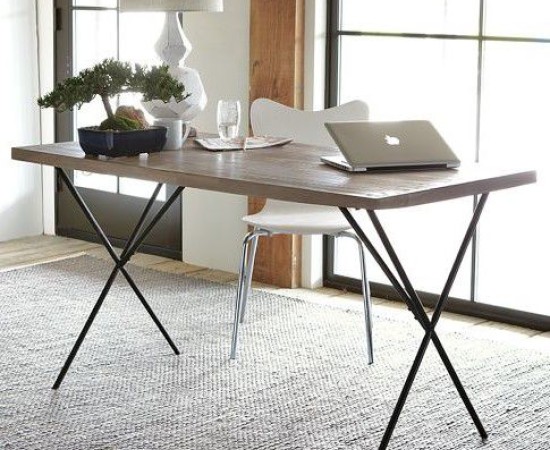 This is another popular table design, consisting of three connected tabletops. You often find these in kitchens, but they are also common as work desks.