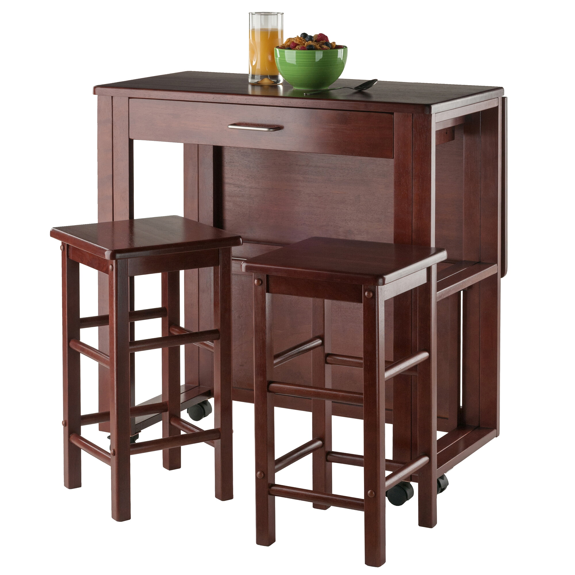 Fremont Space-Saver Extendable Table with 2 Tuck-Away Stools, 31' Wide, 32' High, Walnut