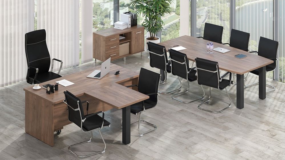 - As for the meeting table, it’s better to arrange the space so the executive is seated with their back to the window. It’s a nice way to keep one’s head in the shade.