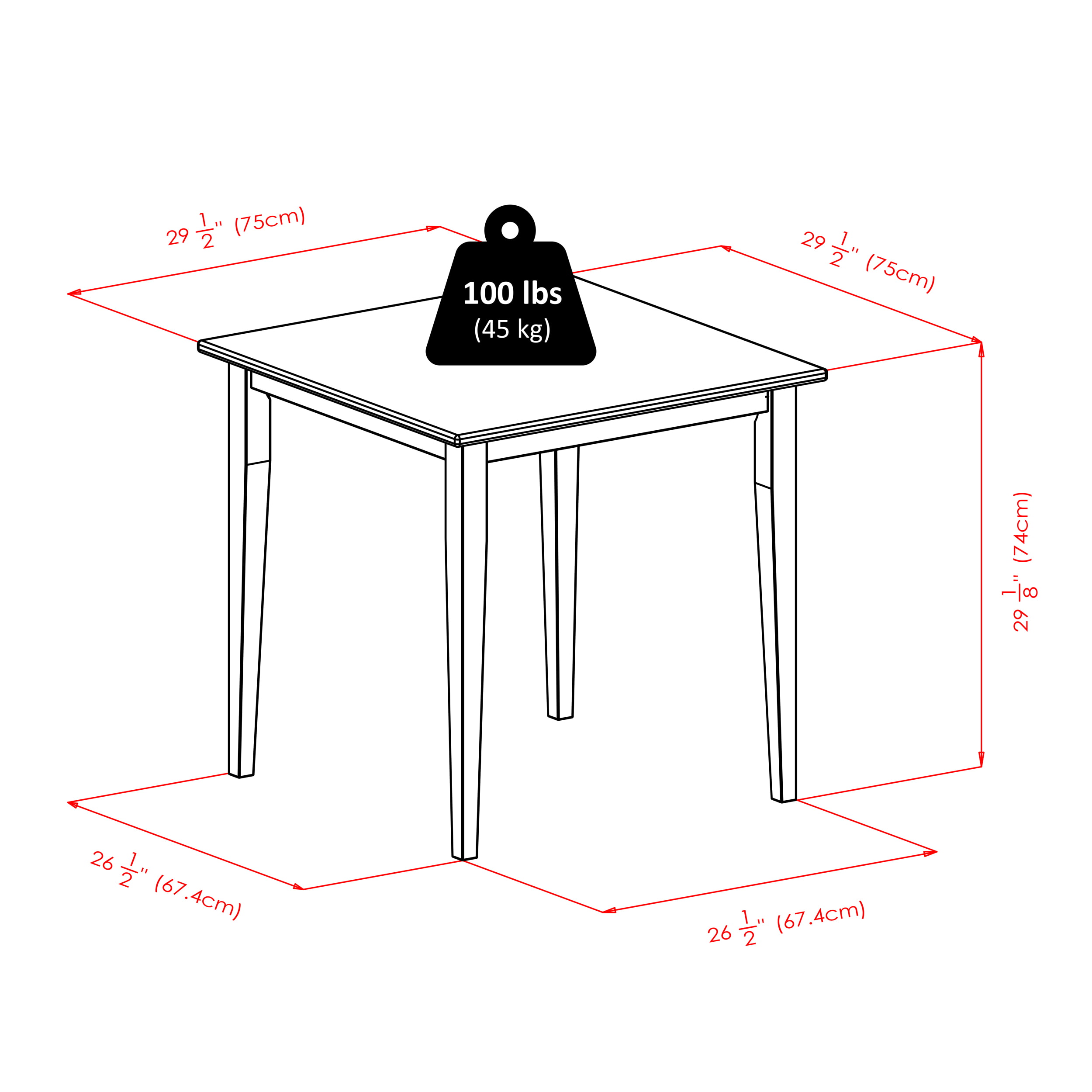 Table - 29.53 x 29.53 x 29.13 INChair - 16.6 x 20.5 x 34.7 IN