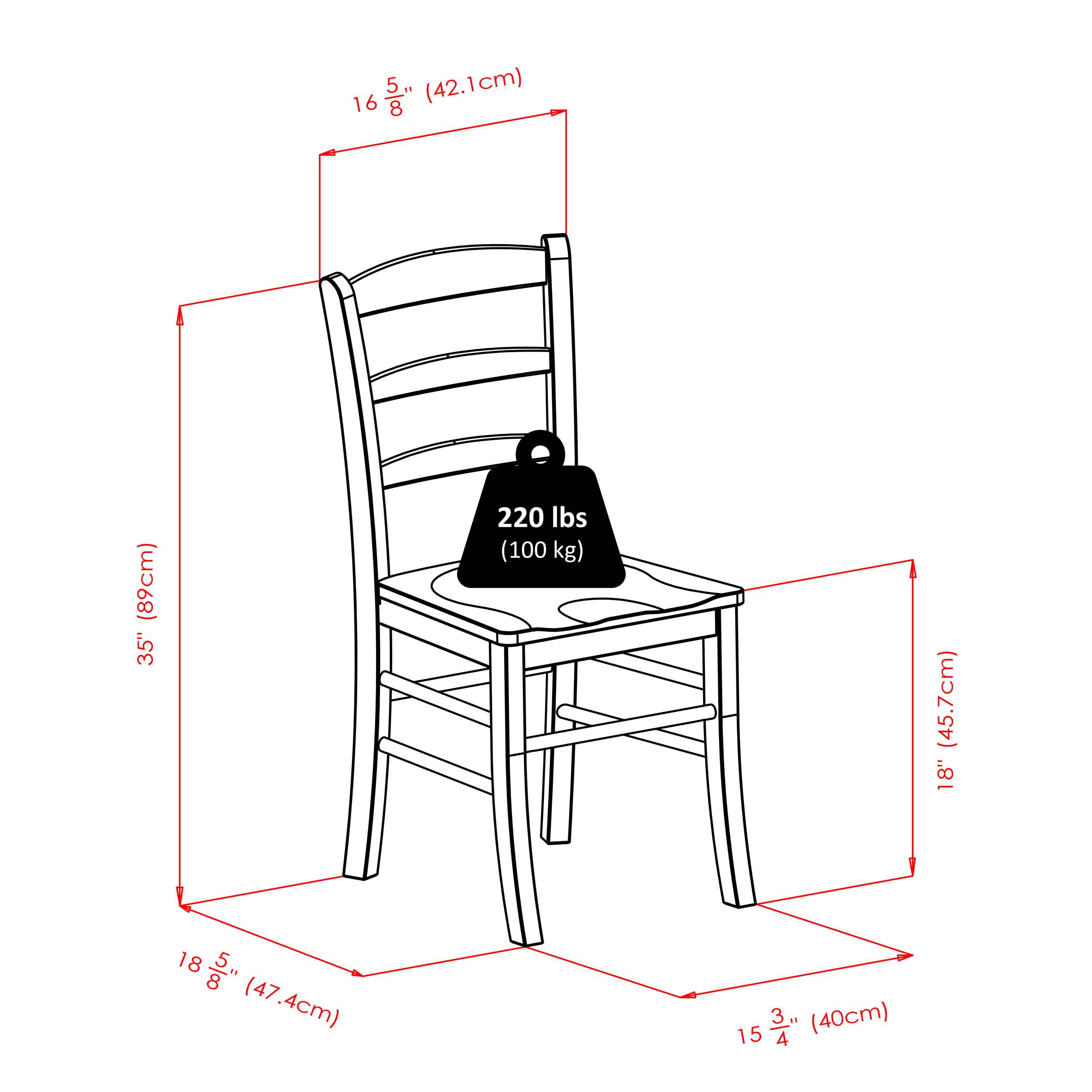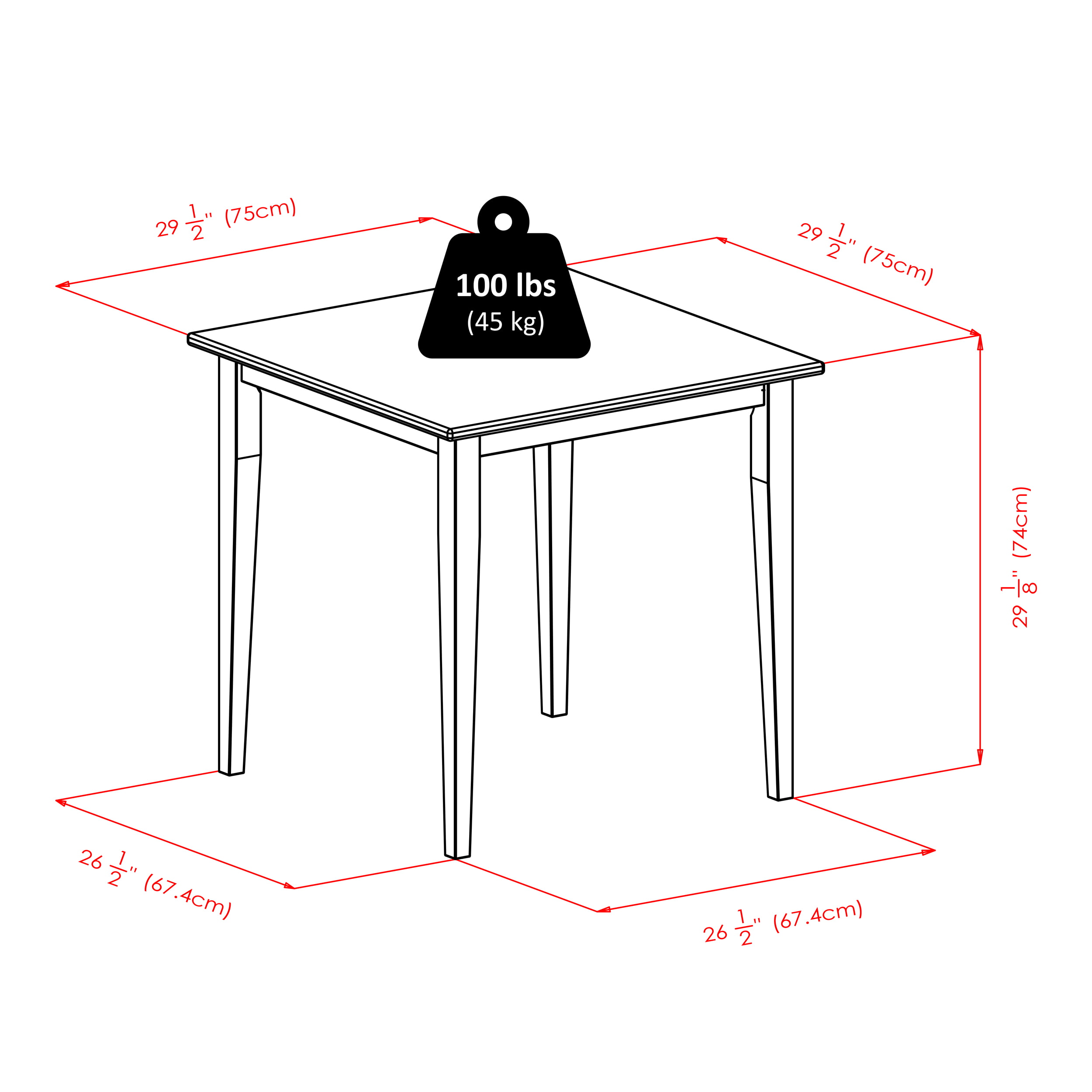 Table - 29.53 x 29.53 x 29.13 INChair - 16.6 x 20.5 x 34.7 IN
