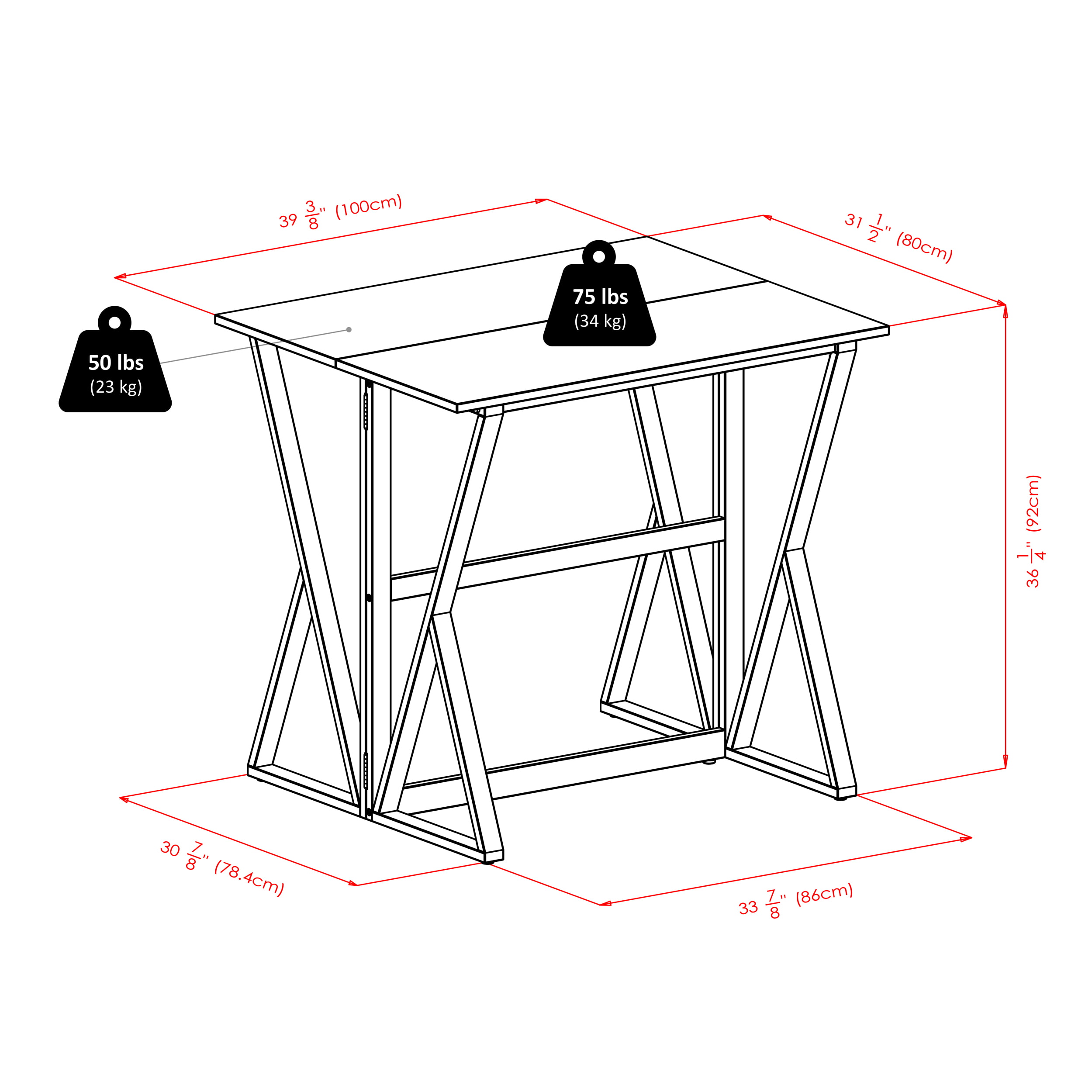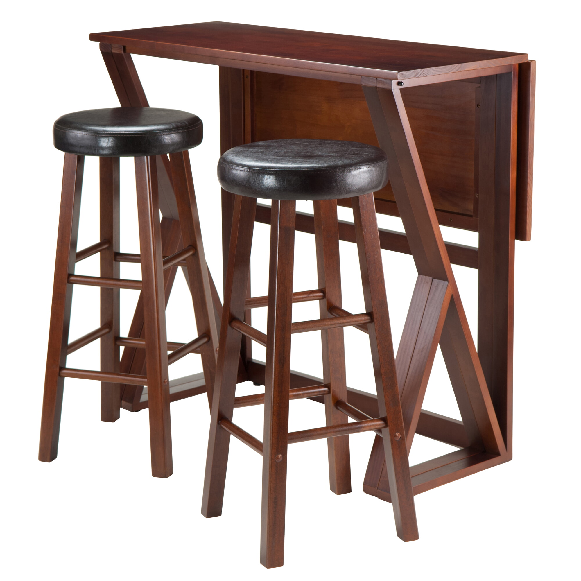 Harrington High Foldable Dining Table with 2 Cushion Bar Stools, 36' High, 39' Wide, Espresso and Walnut