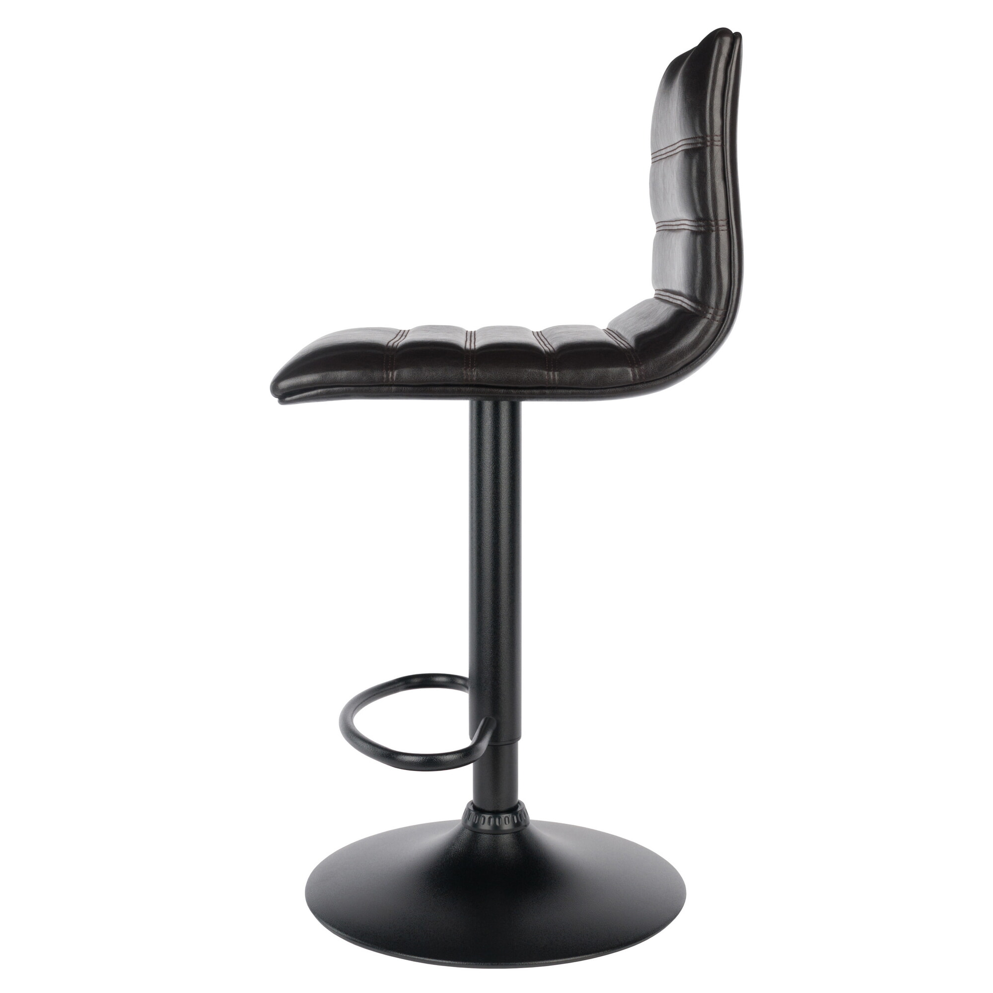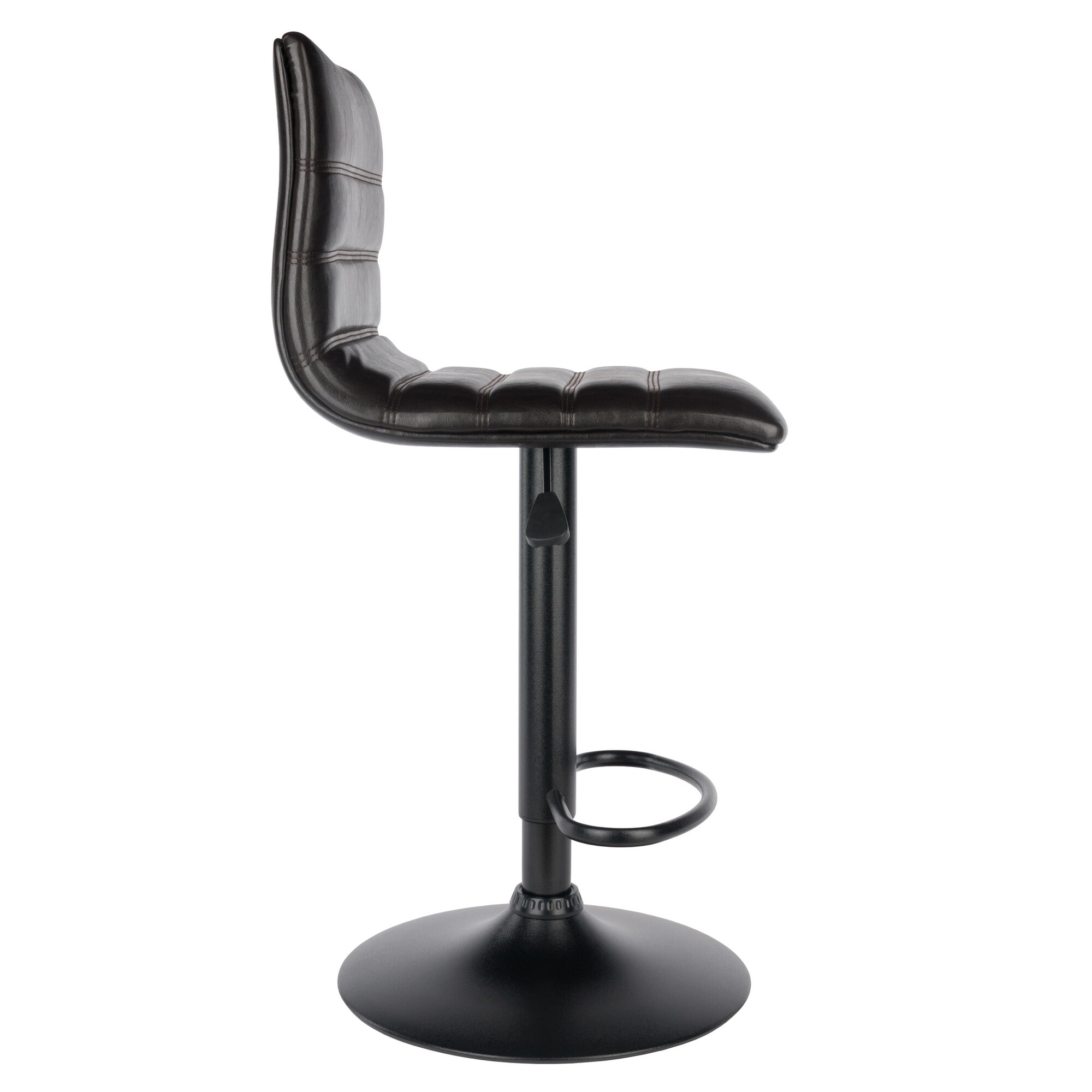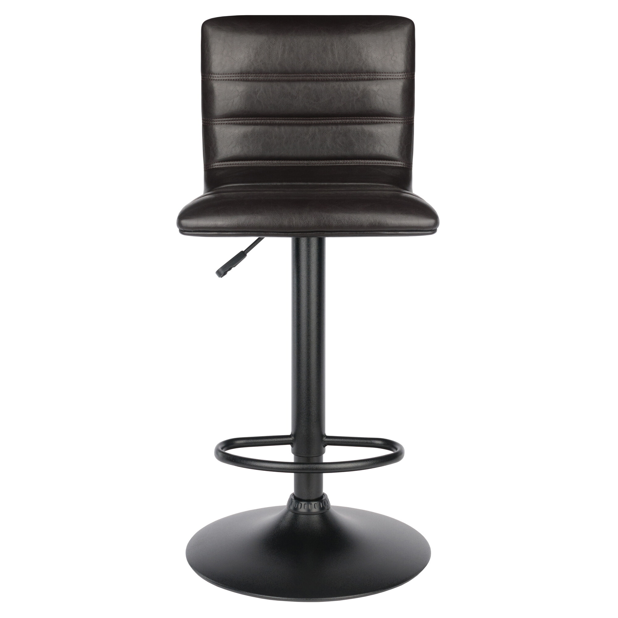 Holly Adjustable Swivel Stool with Faux Leather Seat and Backrest, 44' High, Espresso and Black