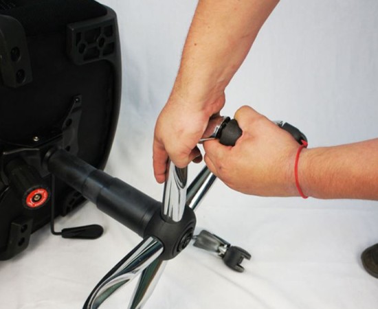 - Turn the chair upside down with the wheels looking upwards (if it is more convenient for you, then put it on its side).