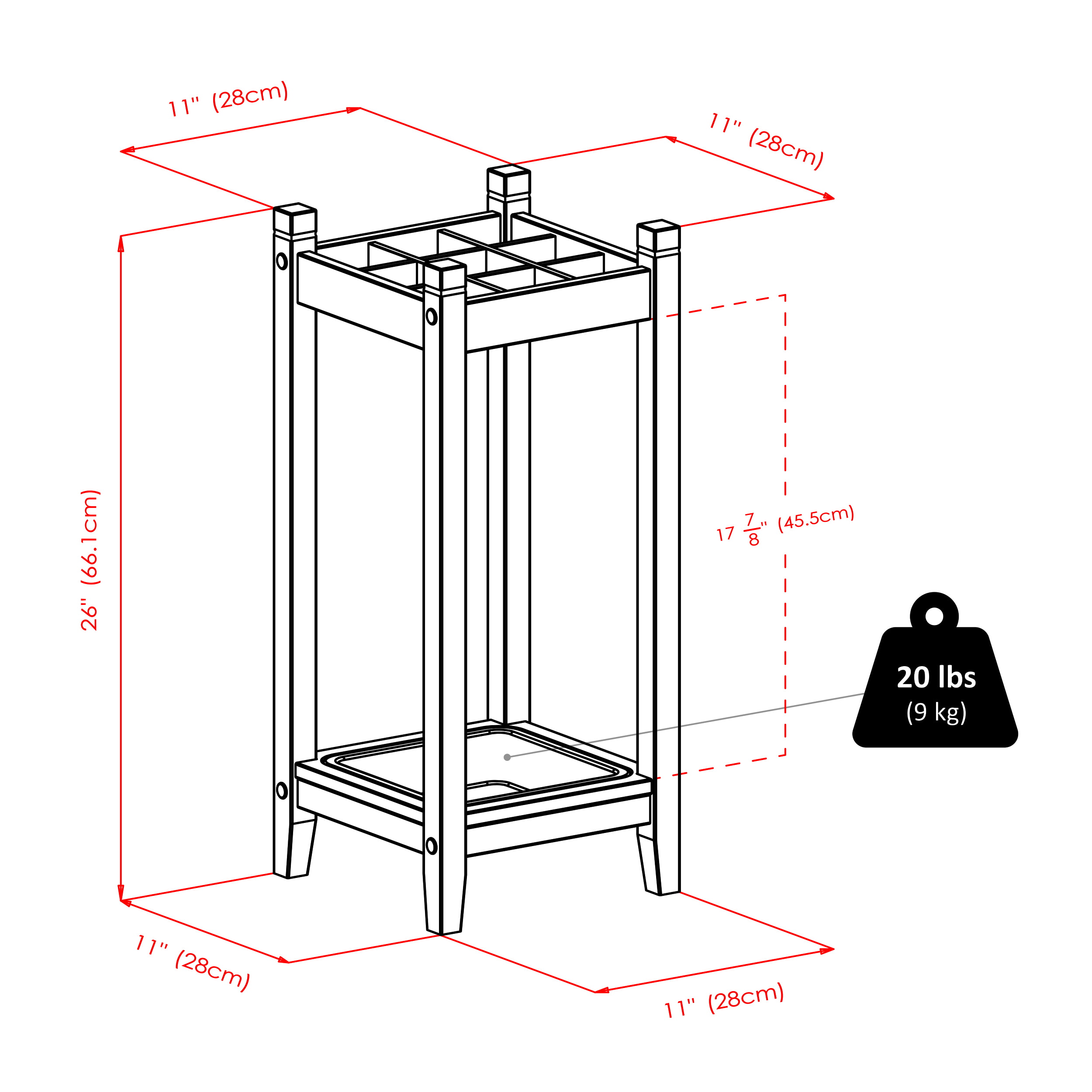 11.02 x 11.02 x 25.98 IN
