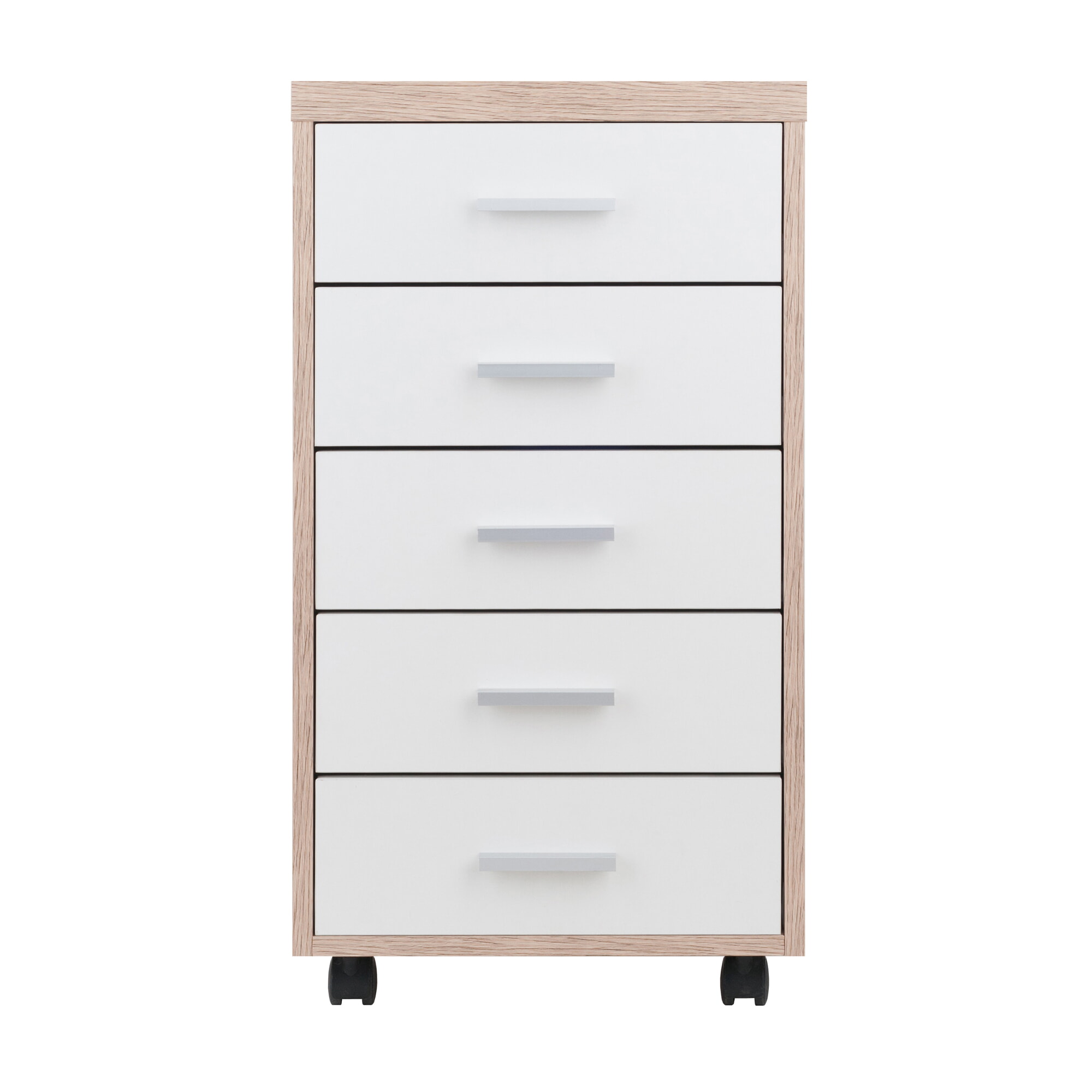 Kenner 5-Drawer Mobile Cabinet, 16' Wide, 29' High, Reclaimed Wood and White