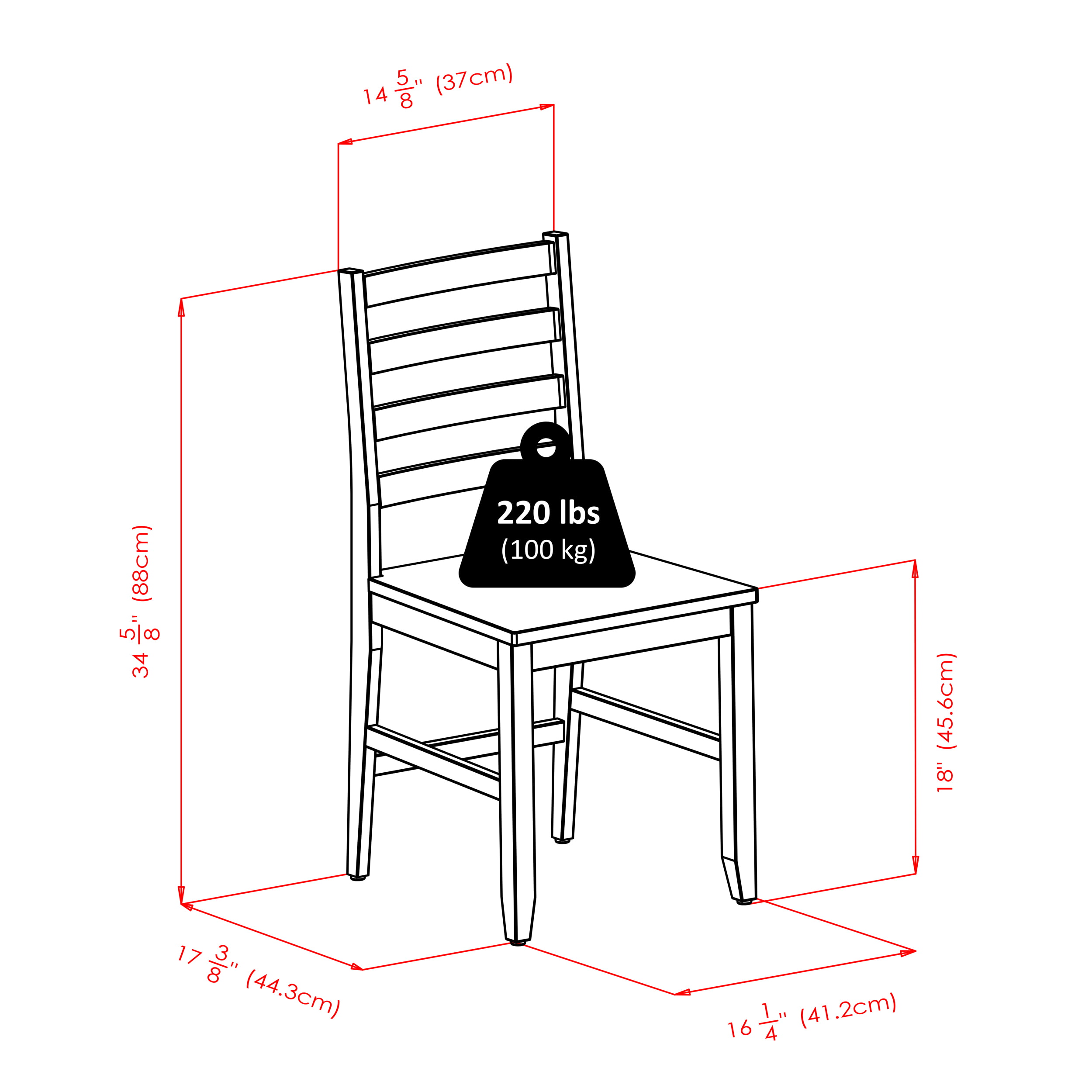 • Includes 2 ladder-back chairs with 16 inch seats that provide style and comfort