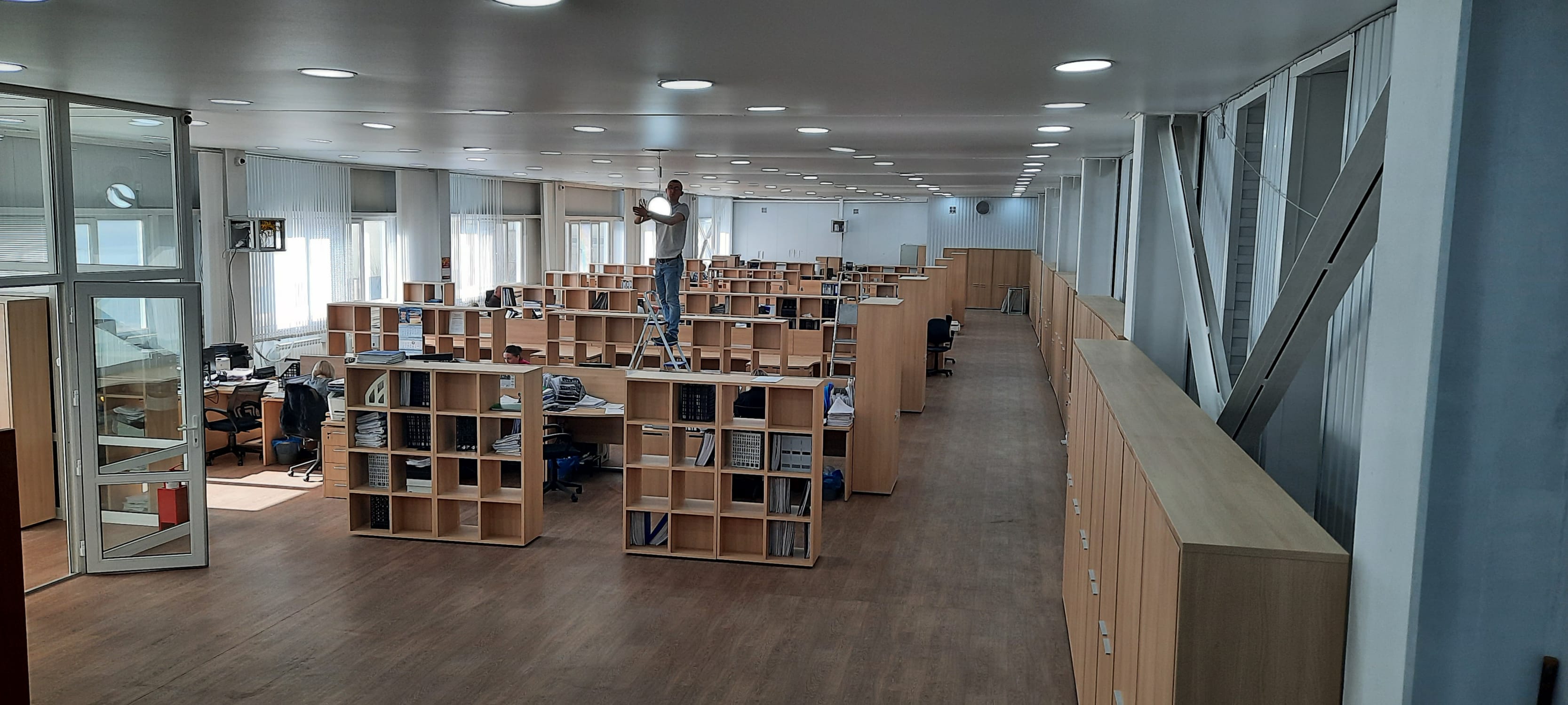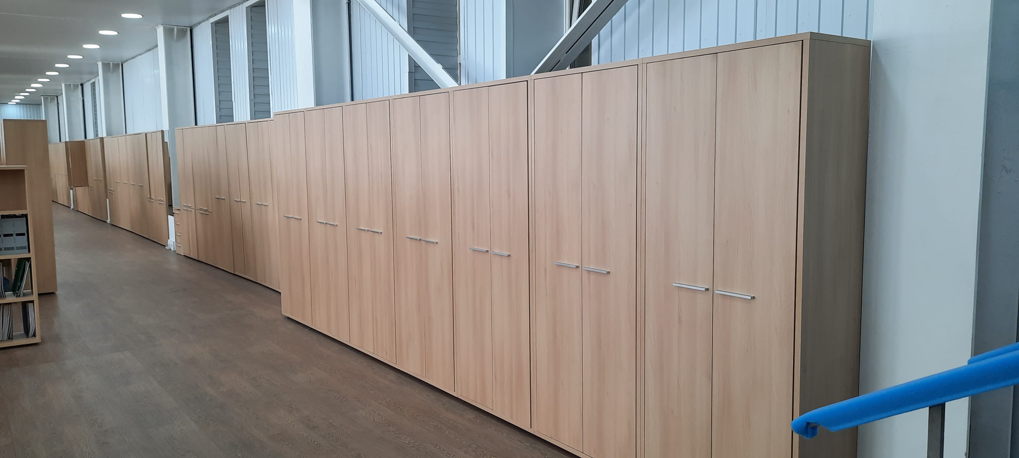 Проект оказался очень интересным не только по своему масштабу, в ходе выполнения были реализованы несколько нестандартных идей, совмещены по цветовой гамме и стилю серии мебели для сотрудников и руководства. Наше сотрудничество продолжается и сегодня, разрабатывается план оборудования складских помещений, в процессе поставки мебель еще для одного кабинета руководителя и ресепшн.