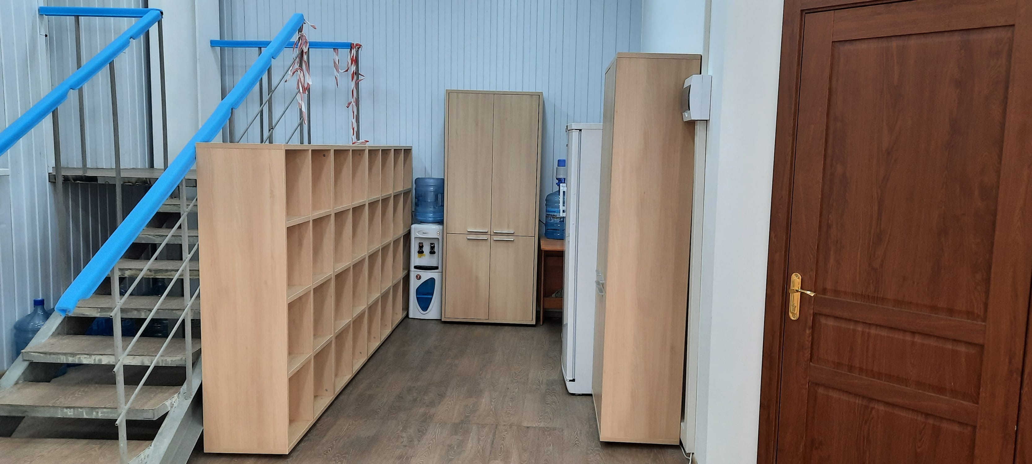Были выбраны серии мебели из наличия или с коротким сроком производства, оптимально подходящие под запросы заказчика. После разработки дизайн-проекта стало понятно, что выполнять зонирование помещения необходимо стеллажами, создав систему для хранения документов. Это позволило оптимизировать пространство, и дало возможность разместить необходимое количество рабочих мест. Также в качестве системы хранения были использованы глухие и комбинированные стеклянными дверями шкафы, имеющиеся в стенах ниши решили заполнить гардеробами.