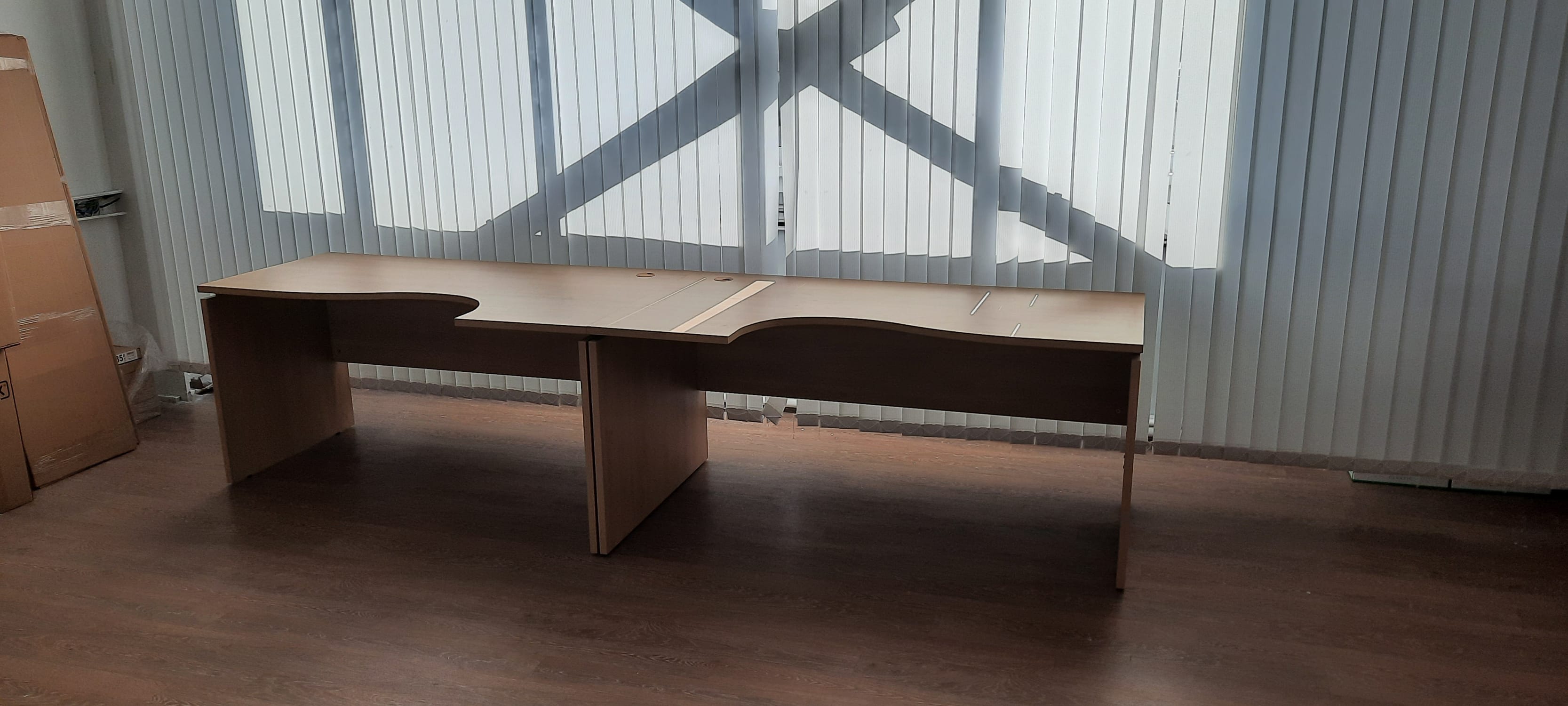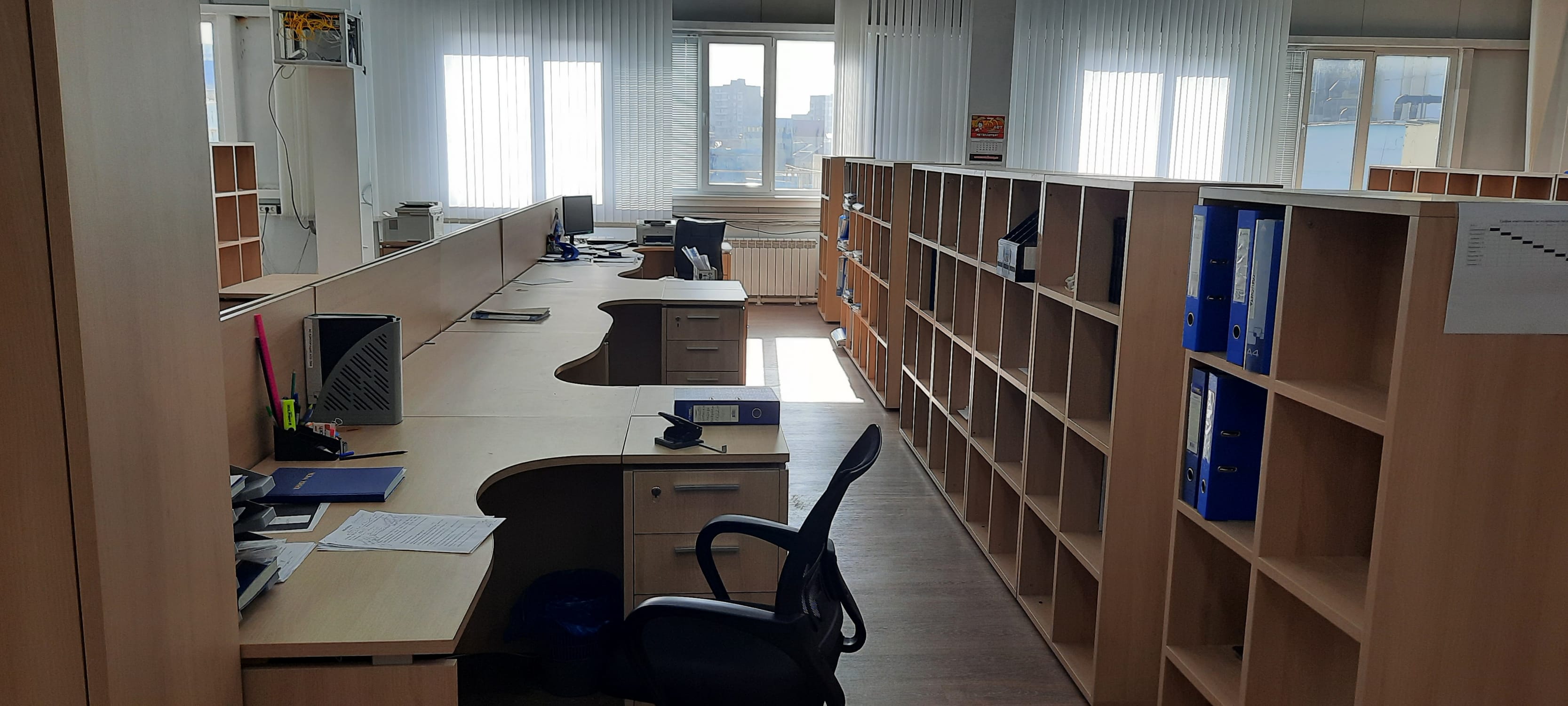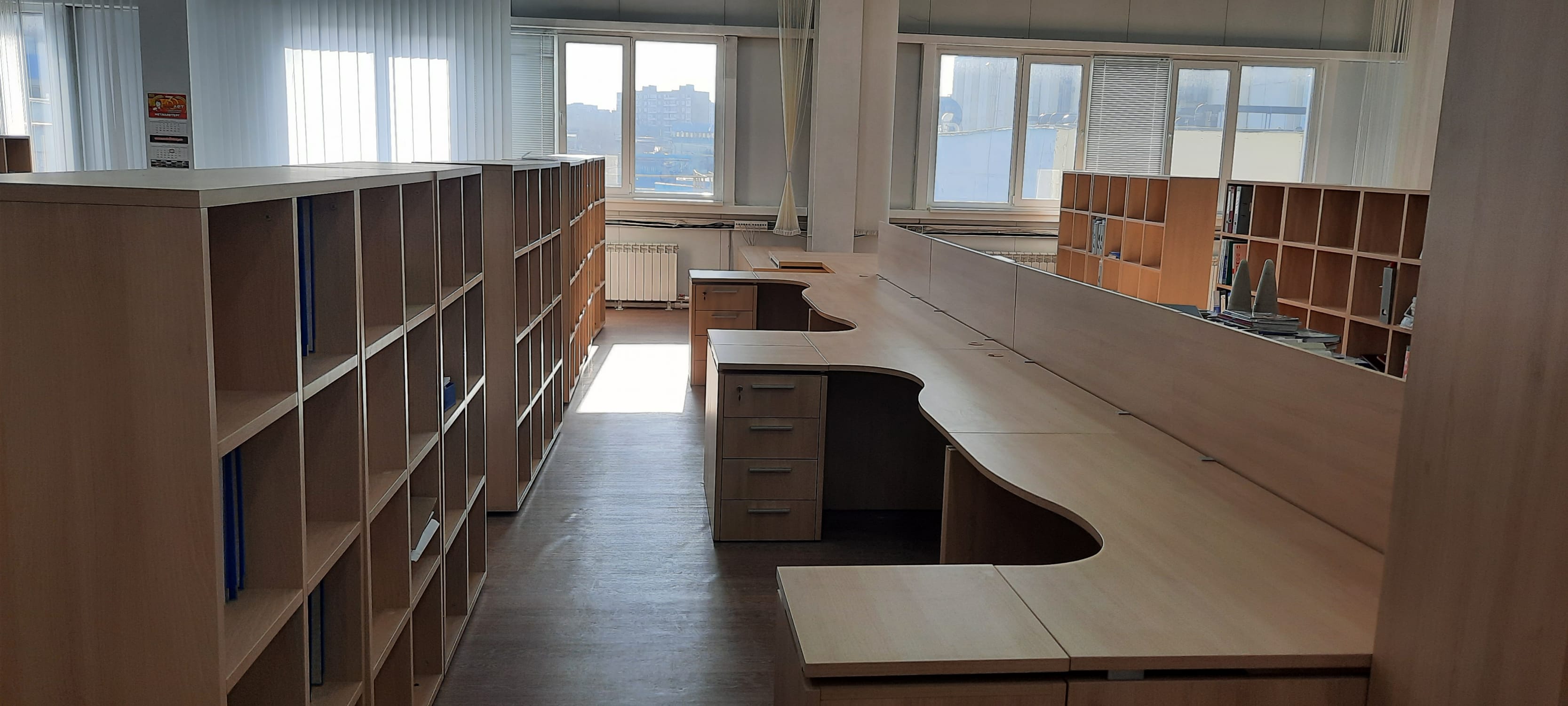 Уникальный по площади офис вытянутой прямоугольной формы, не имеющий перегородок. В короткие сроки необходимо было оборудовать рабочие места сотрудников различных должностей, зонировать пространство, поставлена задача уложиться в имеющийся бюджет, при этом создать современное светлое пространство. Одно из важных требований – эргономичные столы для сотрудников.