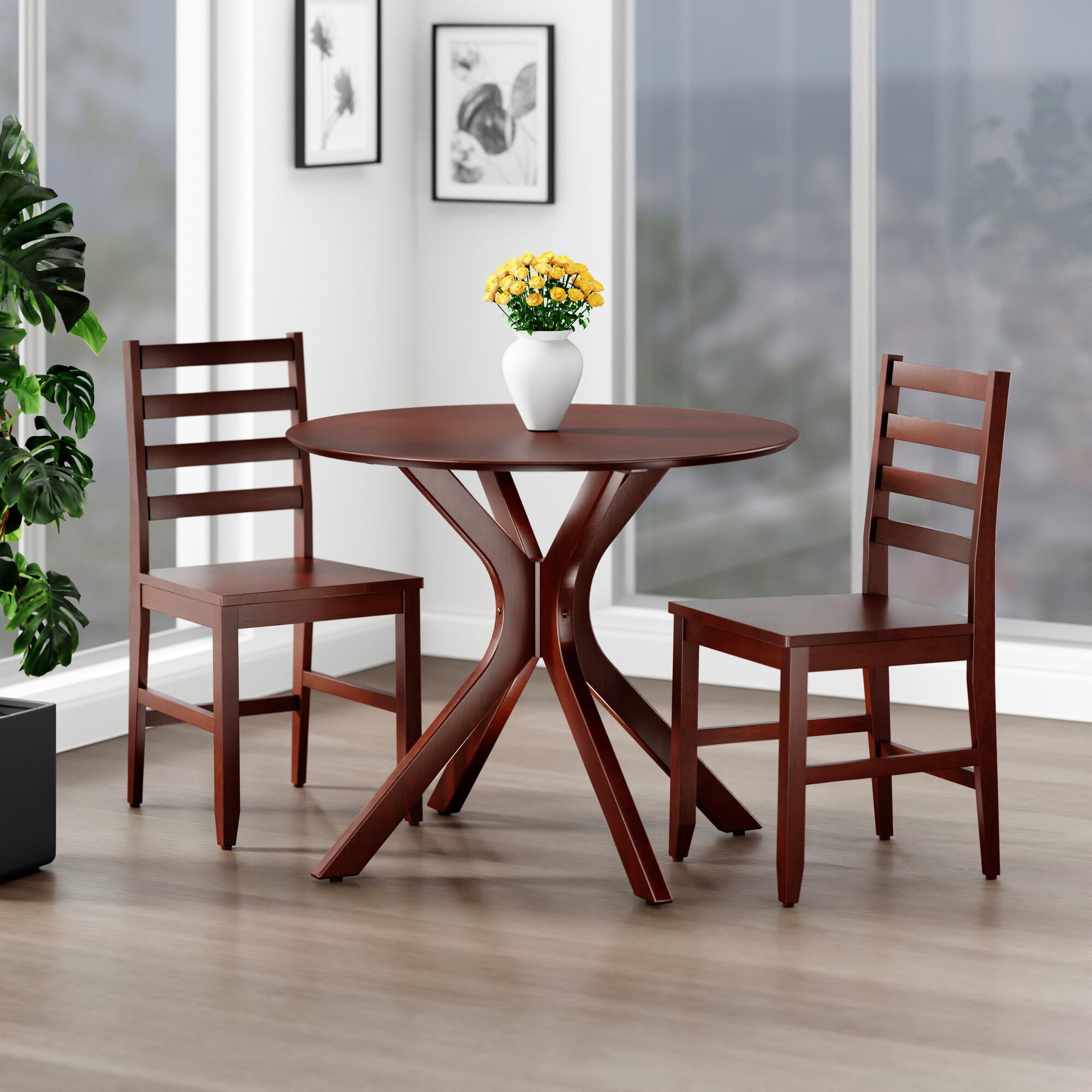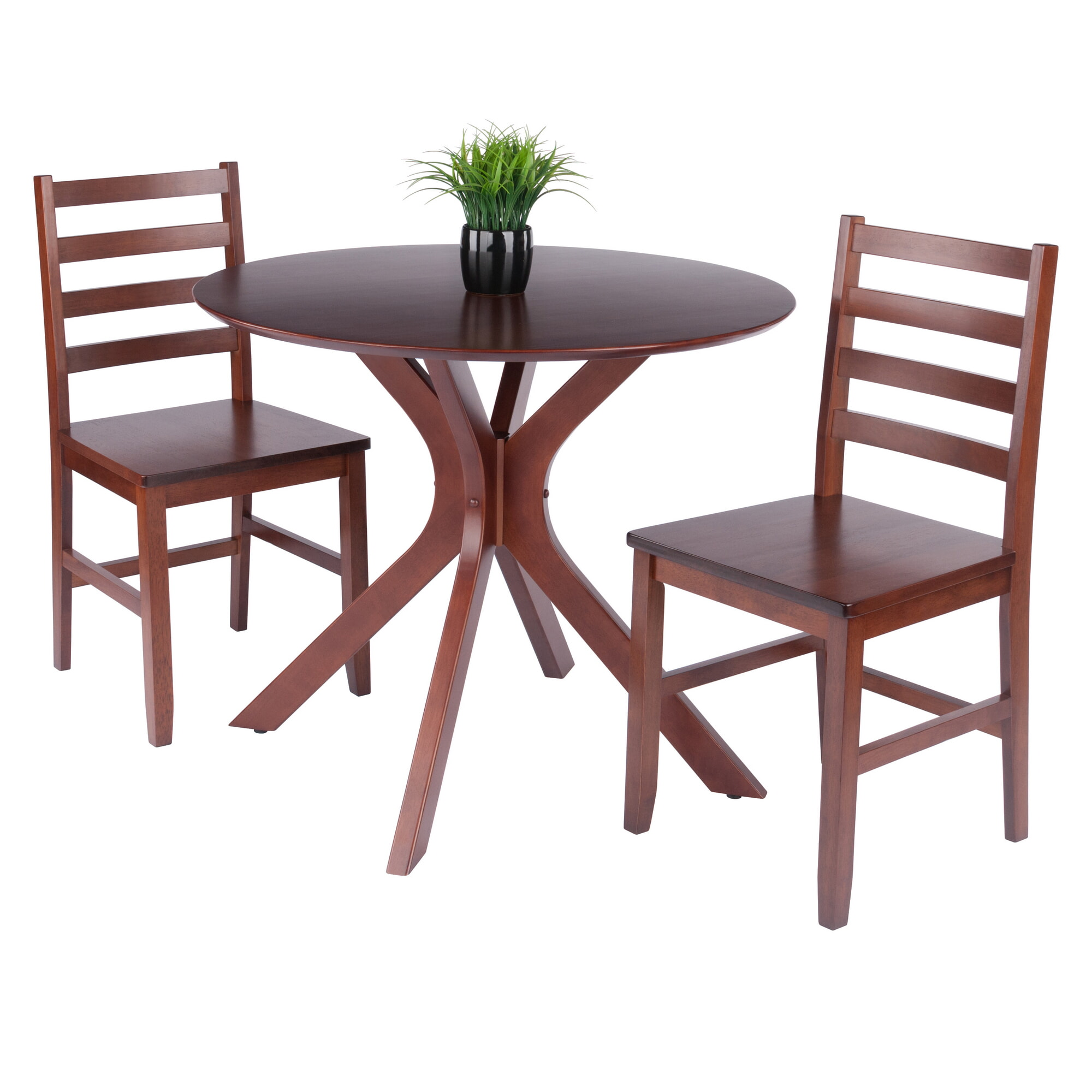 Lexa Dining Table with Splayed Legs, Walnut Finish with 2 Hamilton Dining Chairs