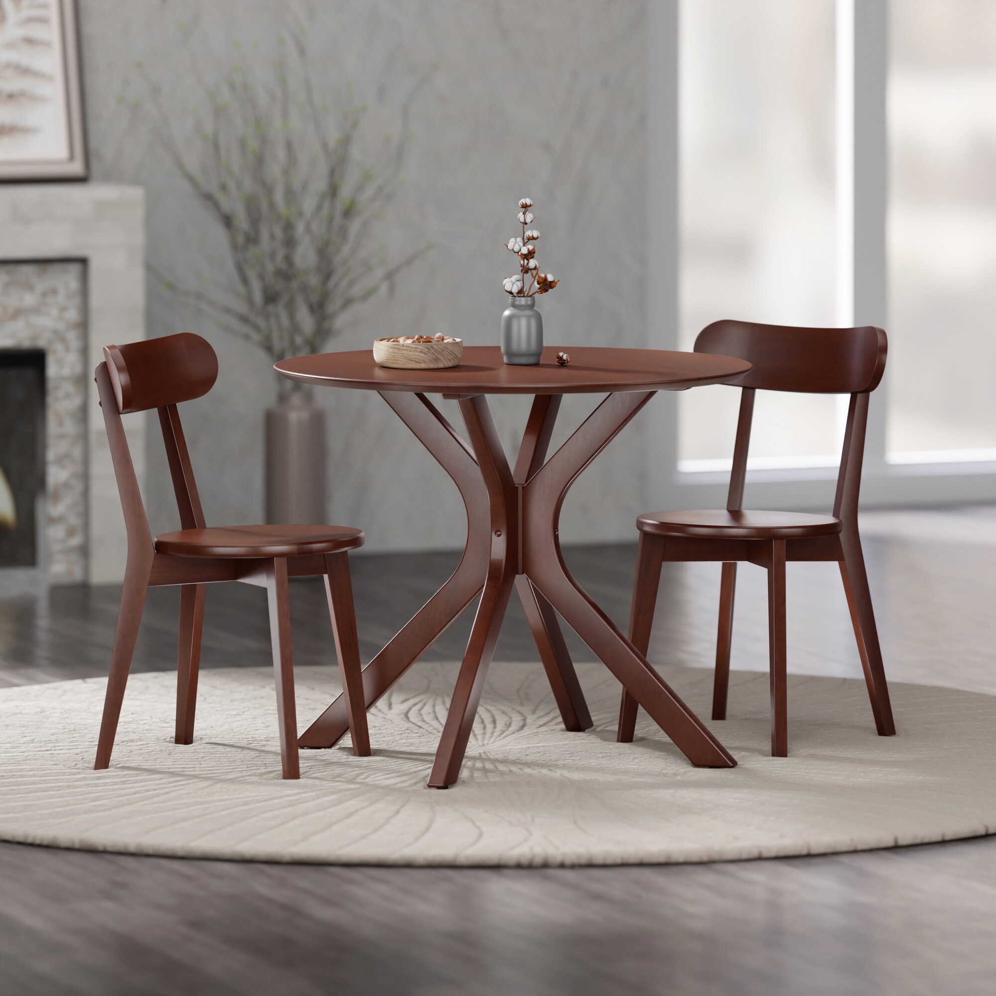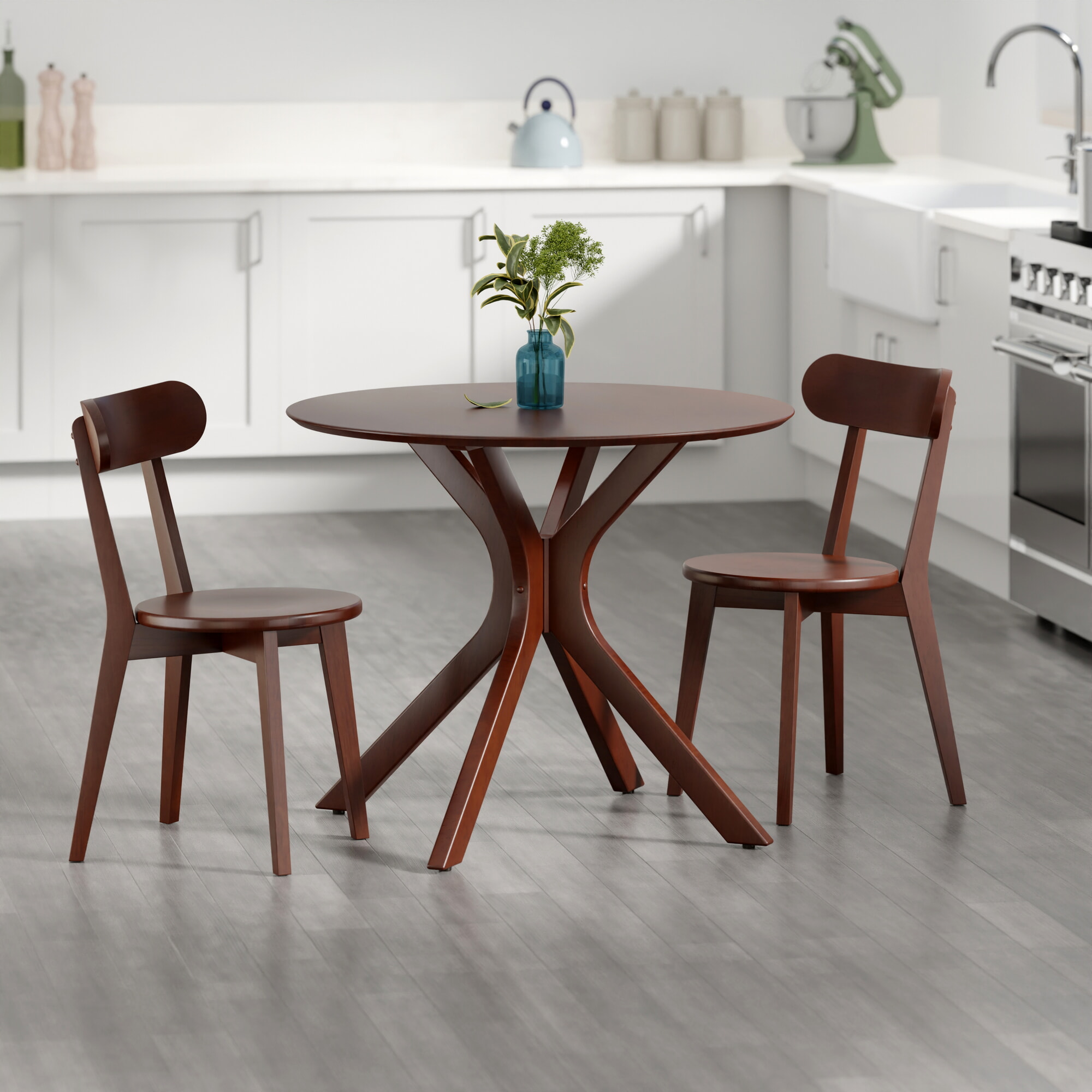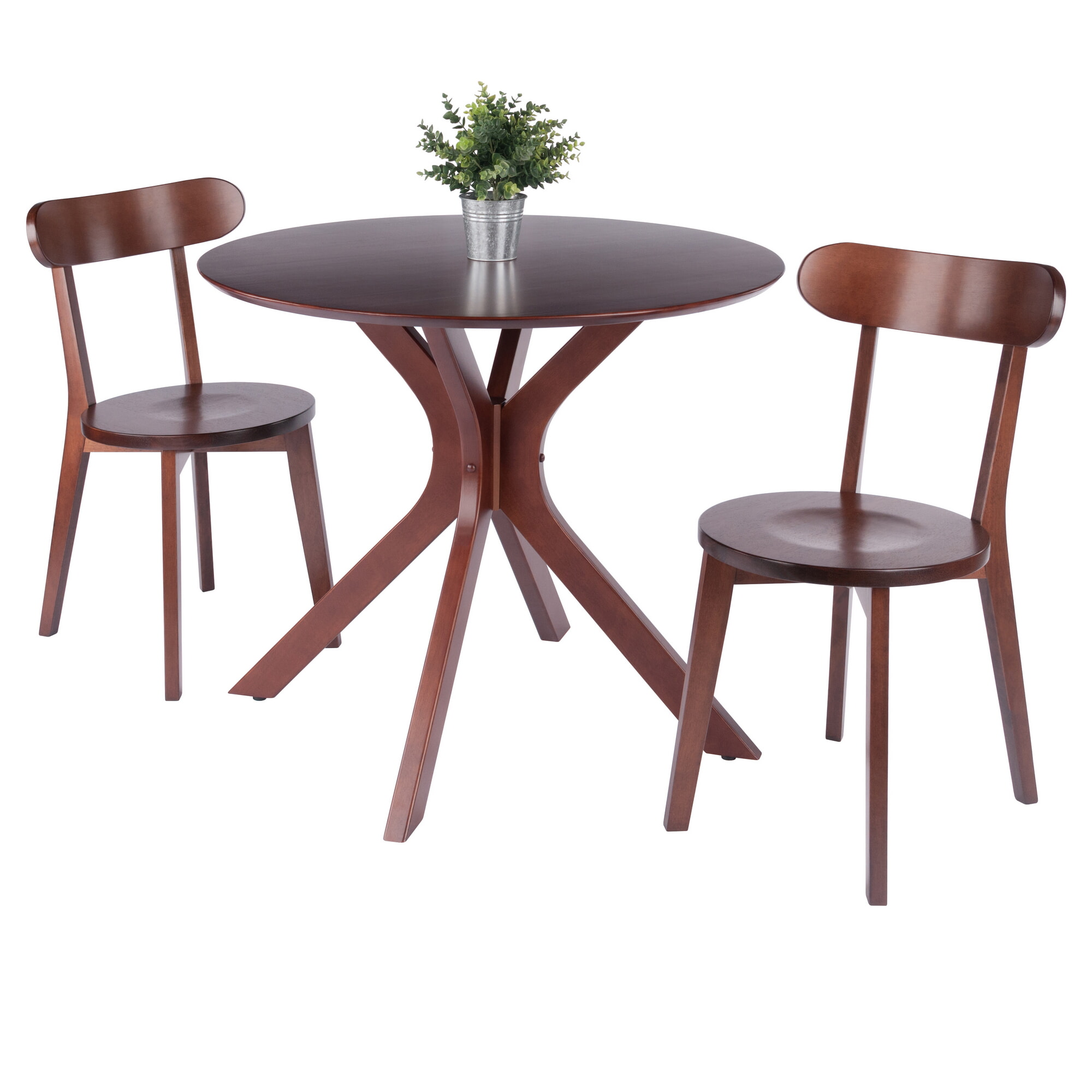 Lexa Dining Table with Splayed Legs, Walnut Finish with 2 Pauline Dining Chairs