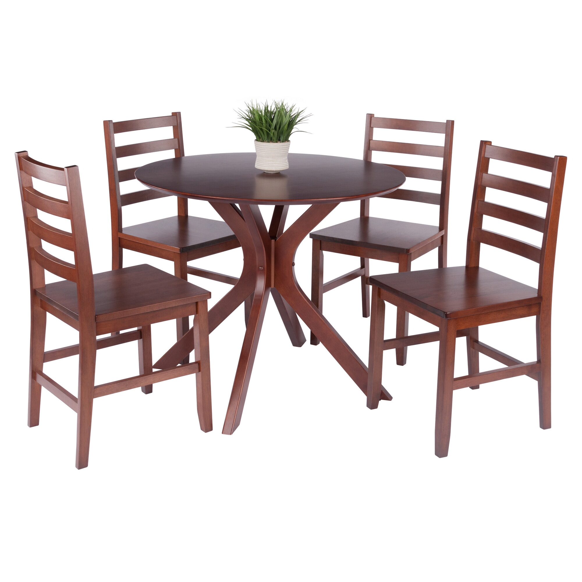 Lexa Dining Table with Splayed Legs, Walnut Finish with 4 Hamilton Dining Chairs