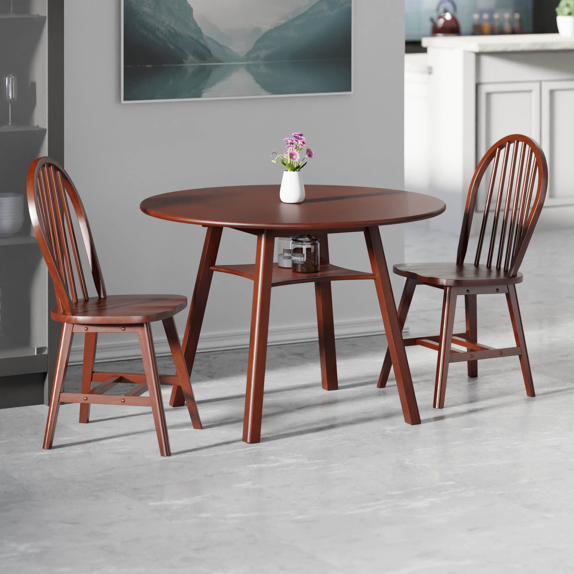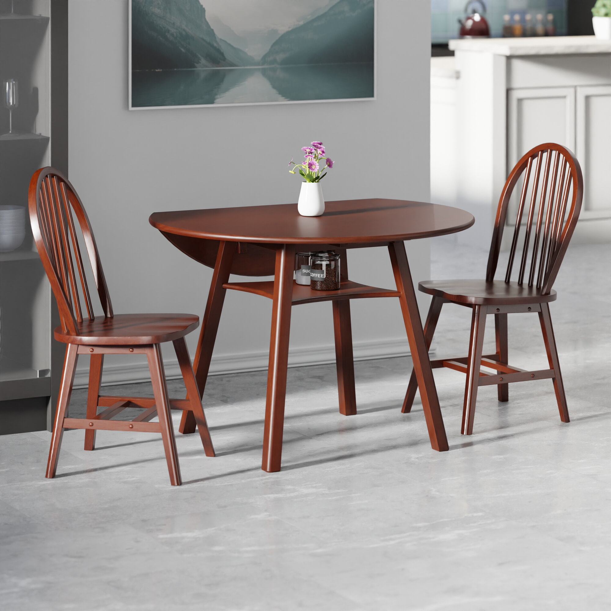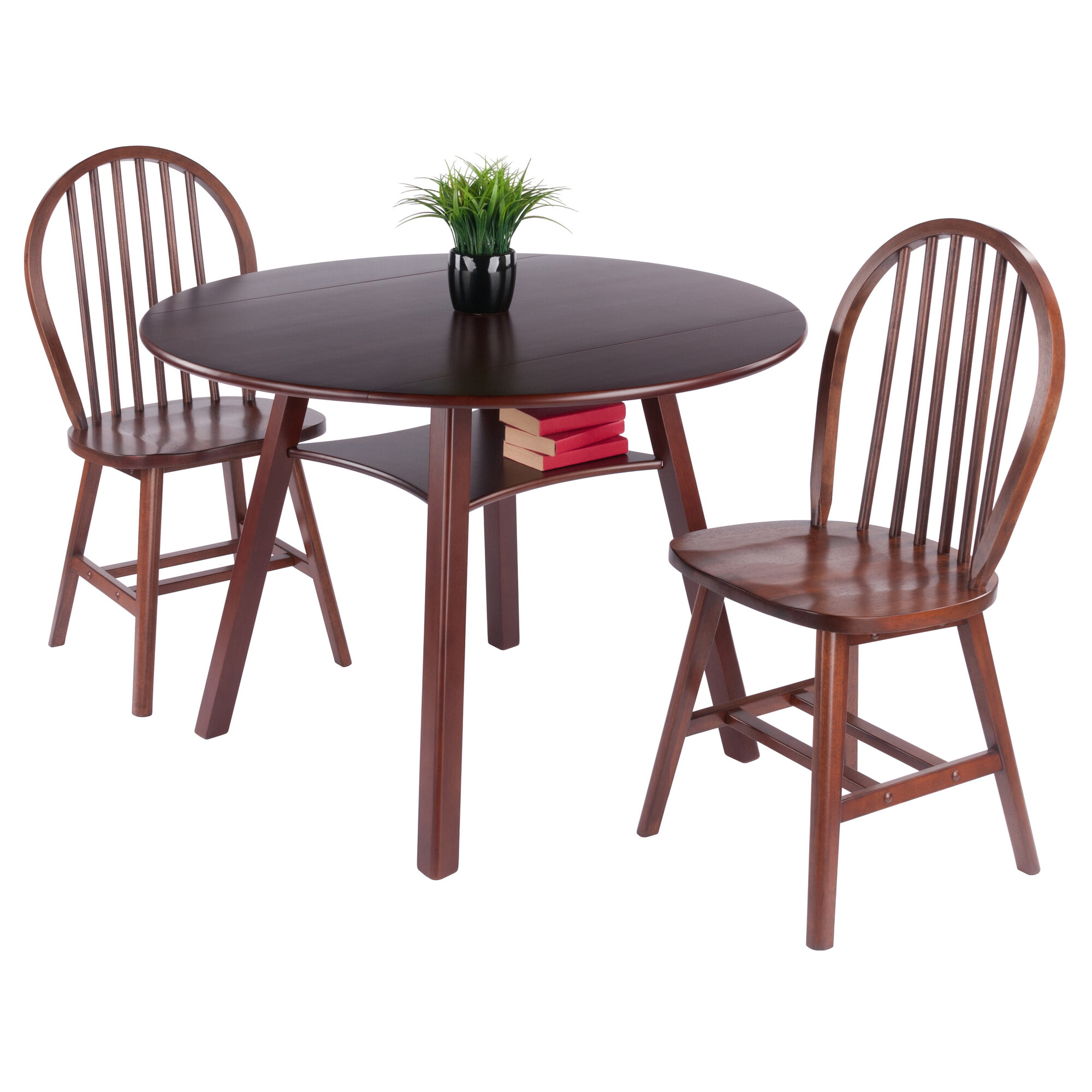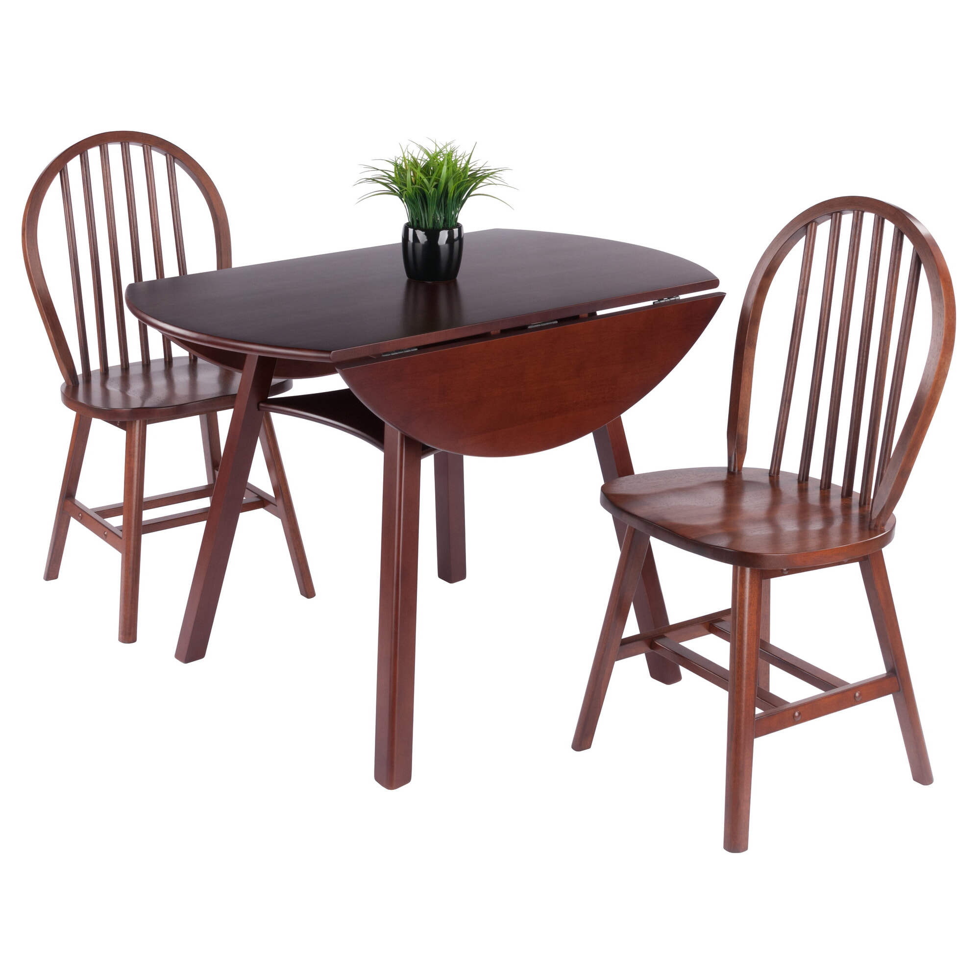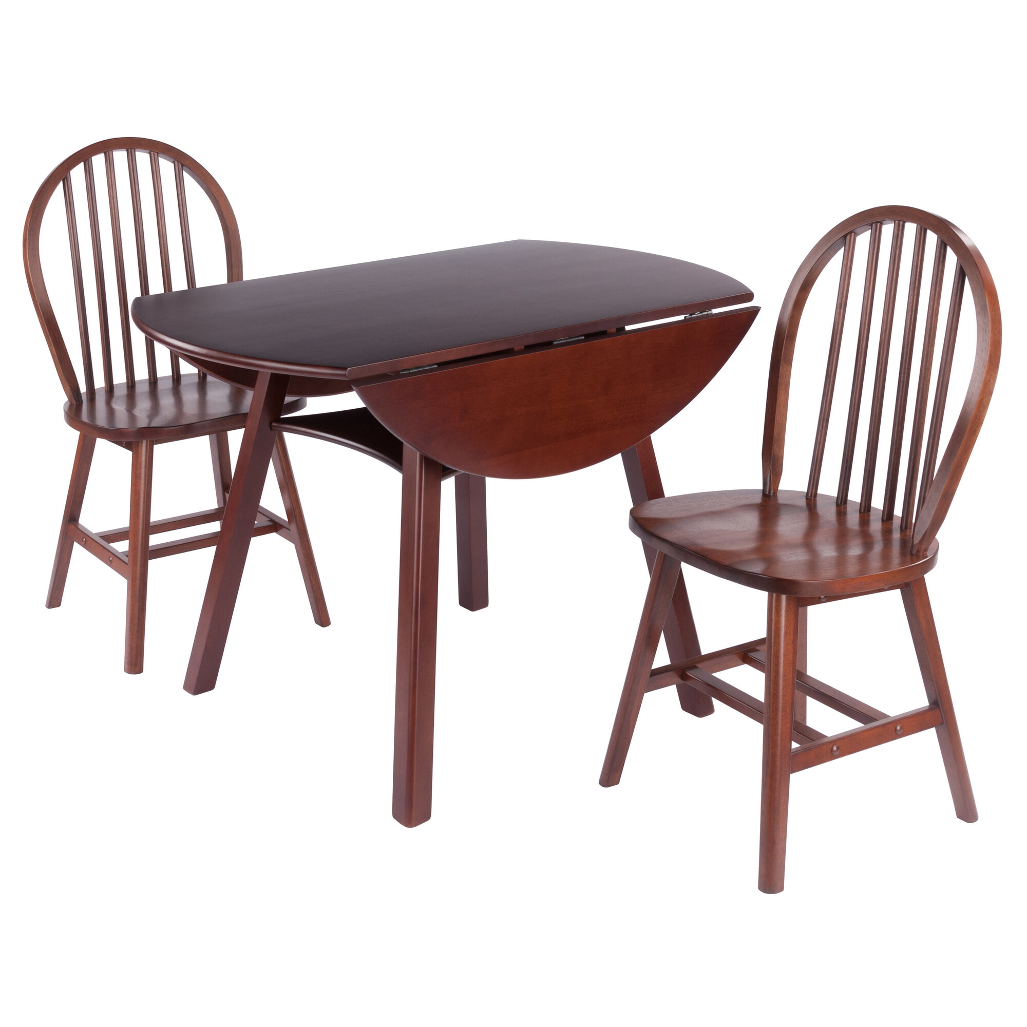 Marbelle 3-Pc Drop Leaf Dining Table with 2 Windsor Chairs, Walnut Finish
