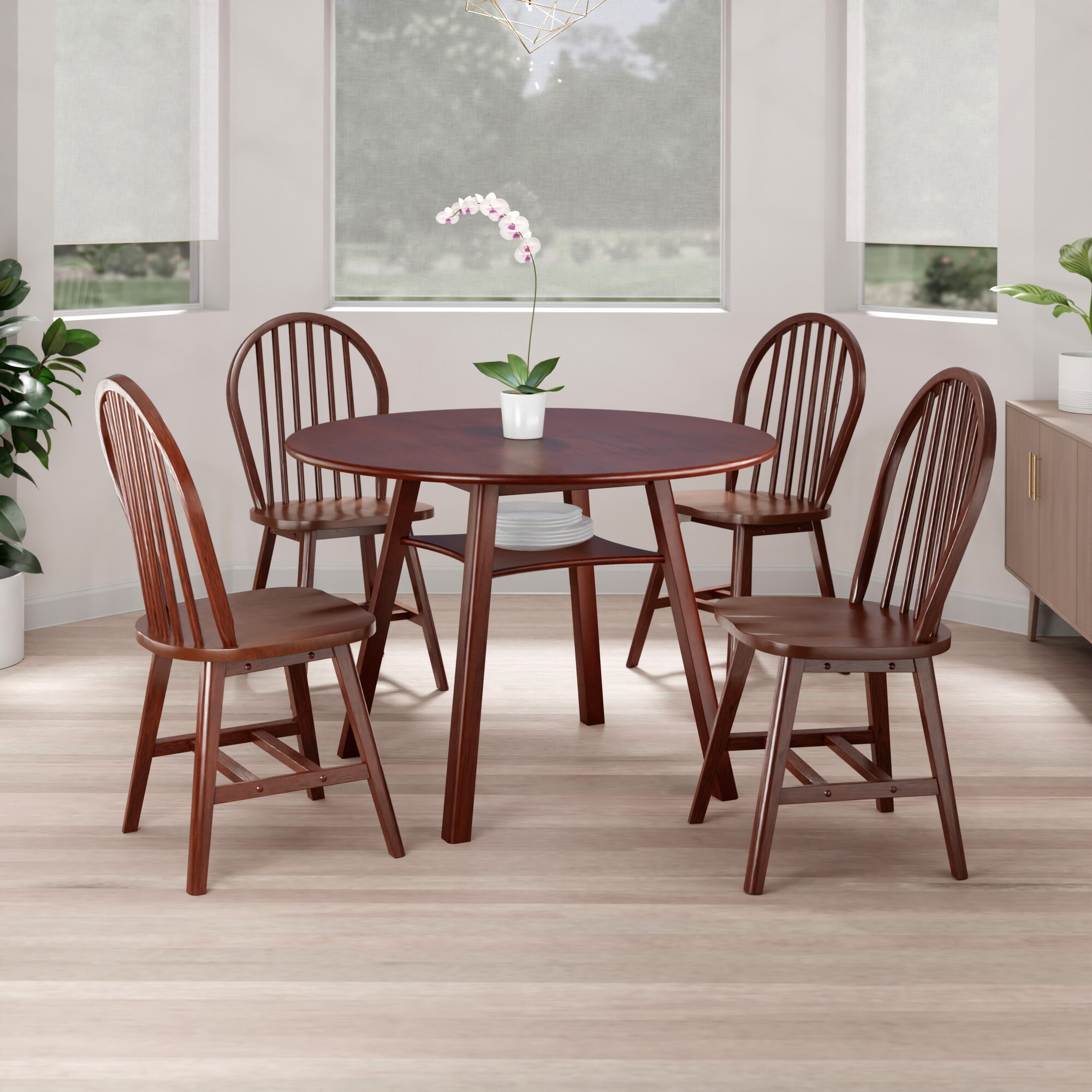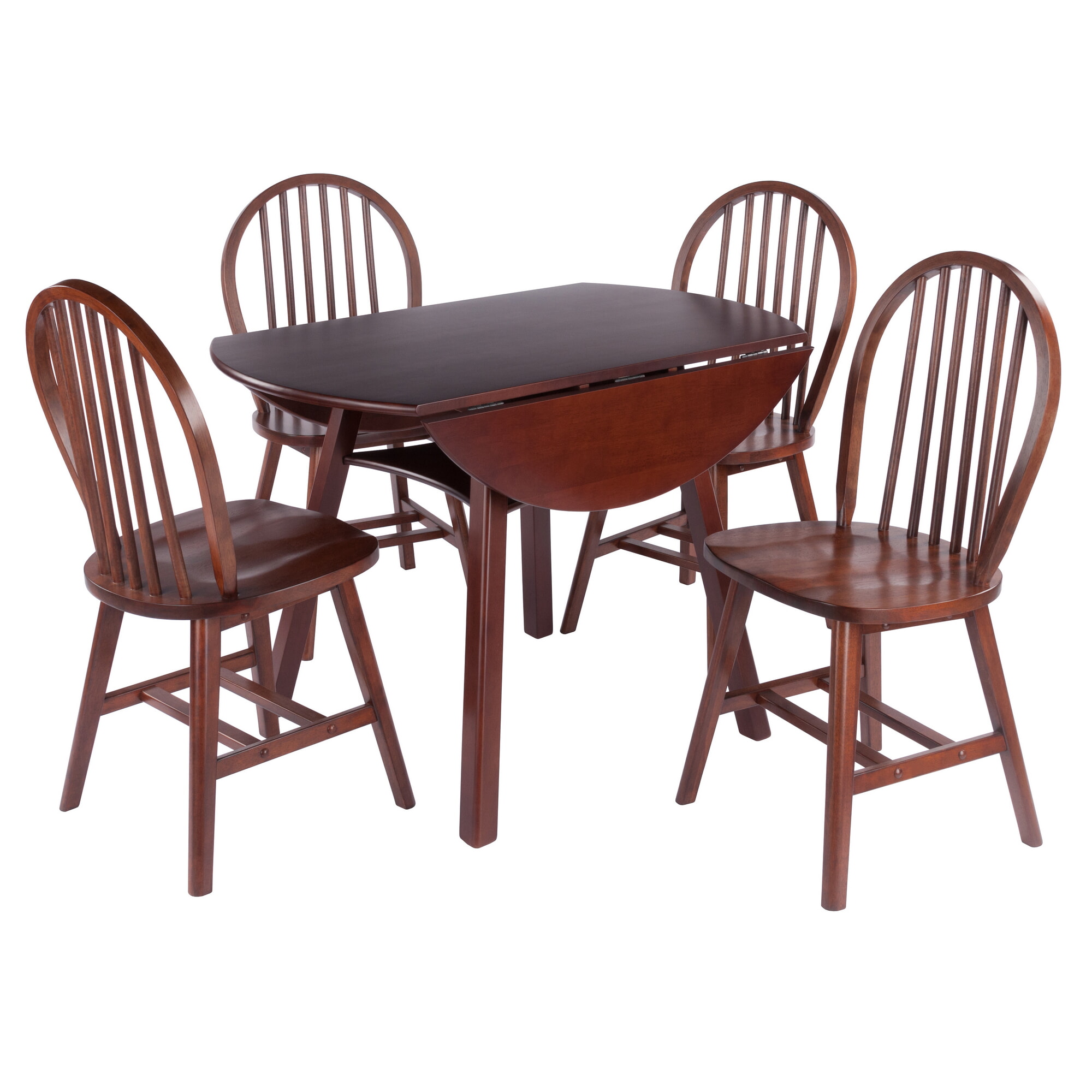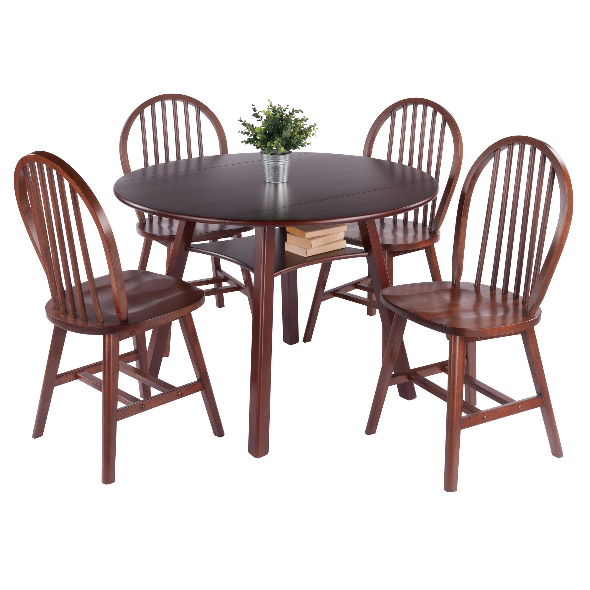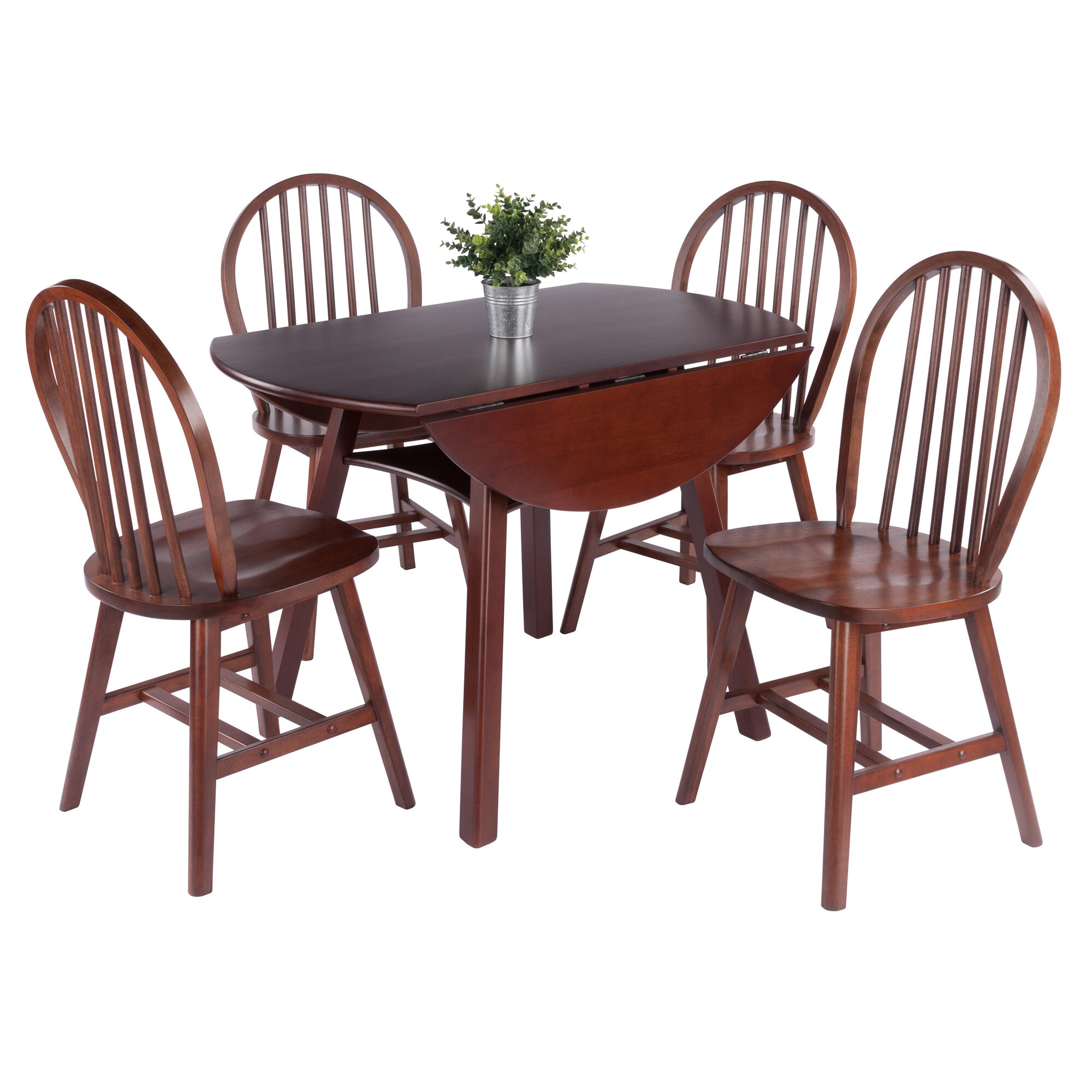 Marbelle 5-Pc Drop Leaf Dining Table with 4 Windsor Chairs, Walnut Finish
