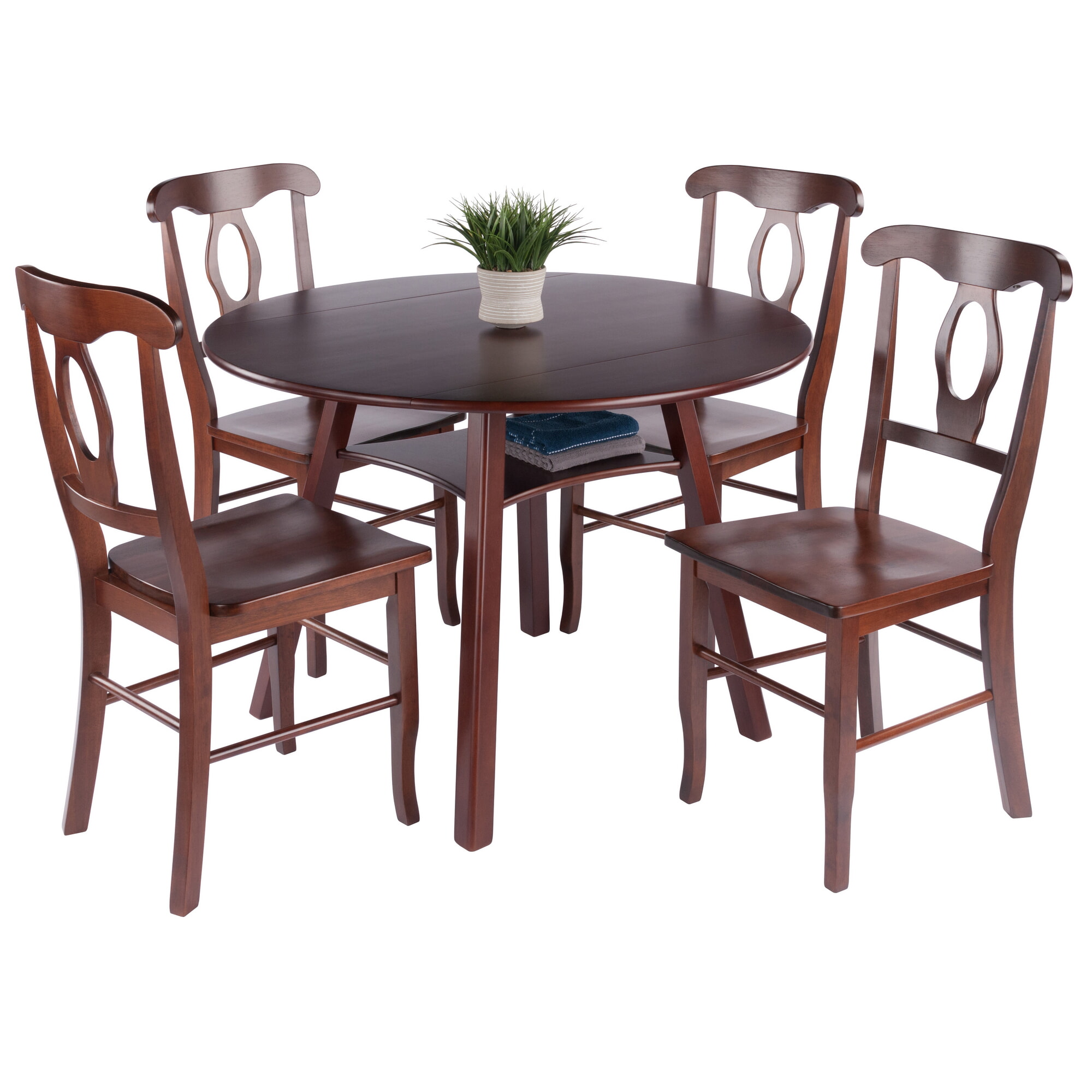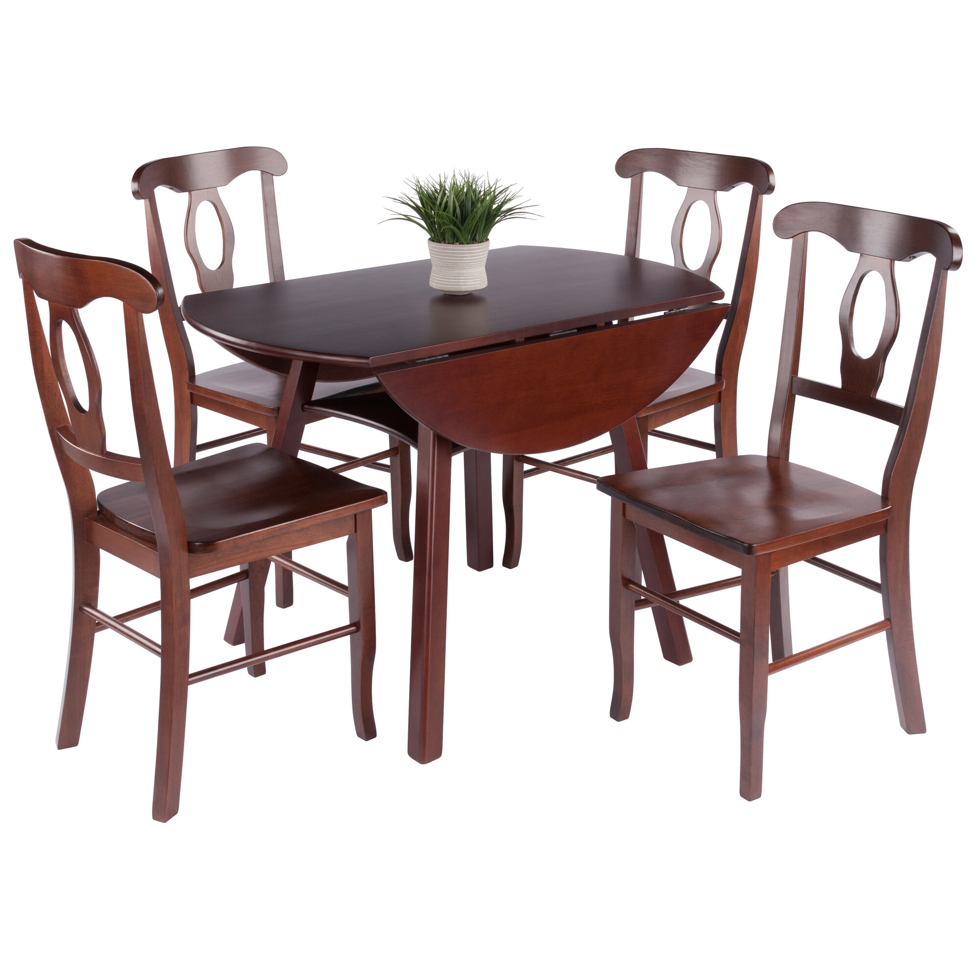 Marbelle Table 5-Pc Drop Leaf Dining Table with 4 Renaissance Chairs, Walnut Finish