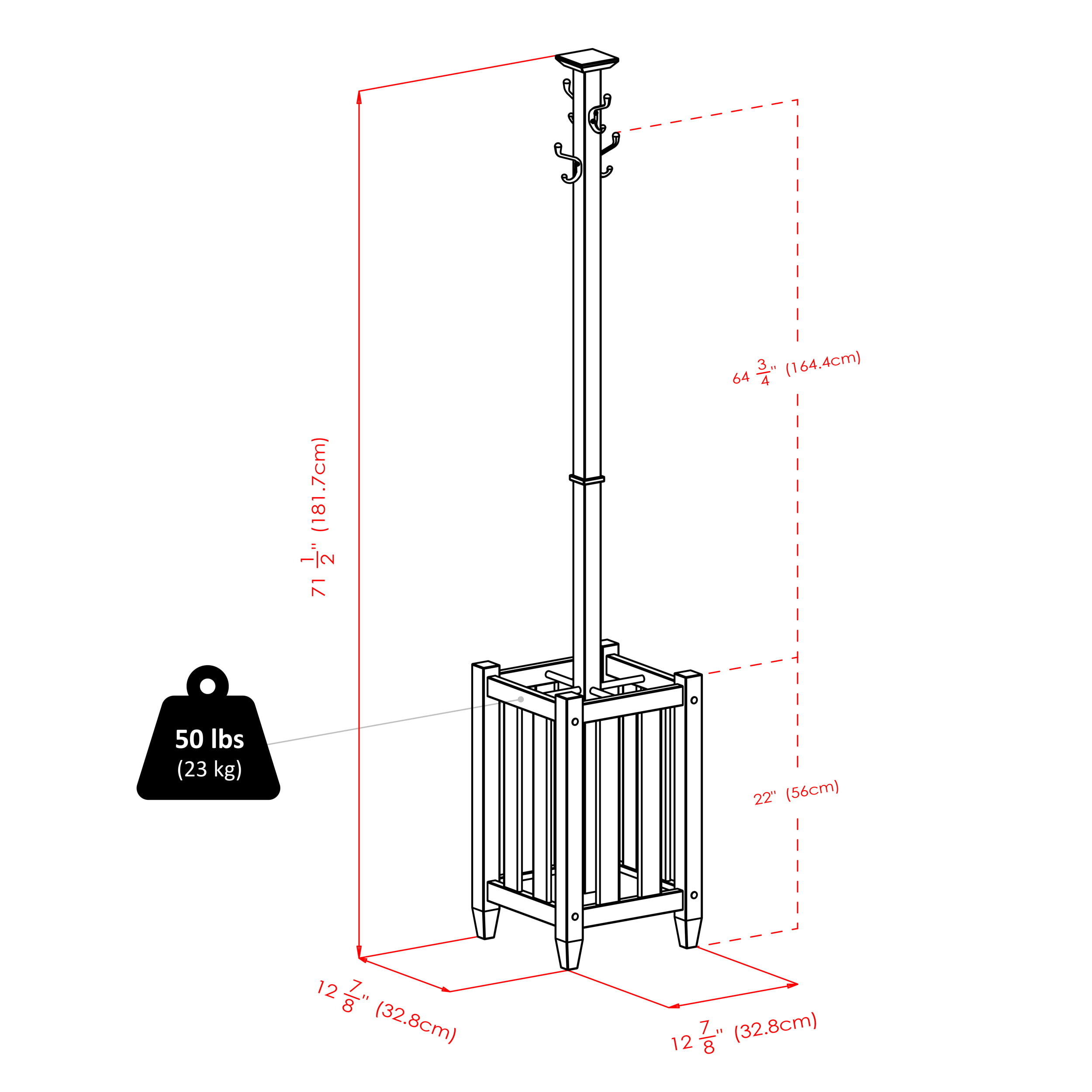 Memphis Coat Rack with Umbrella Stand, 72' High, Cappuccino