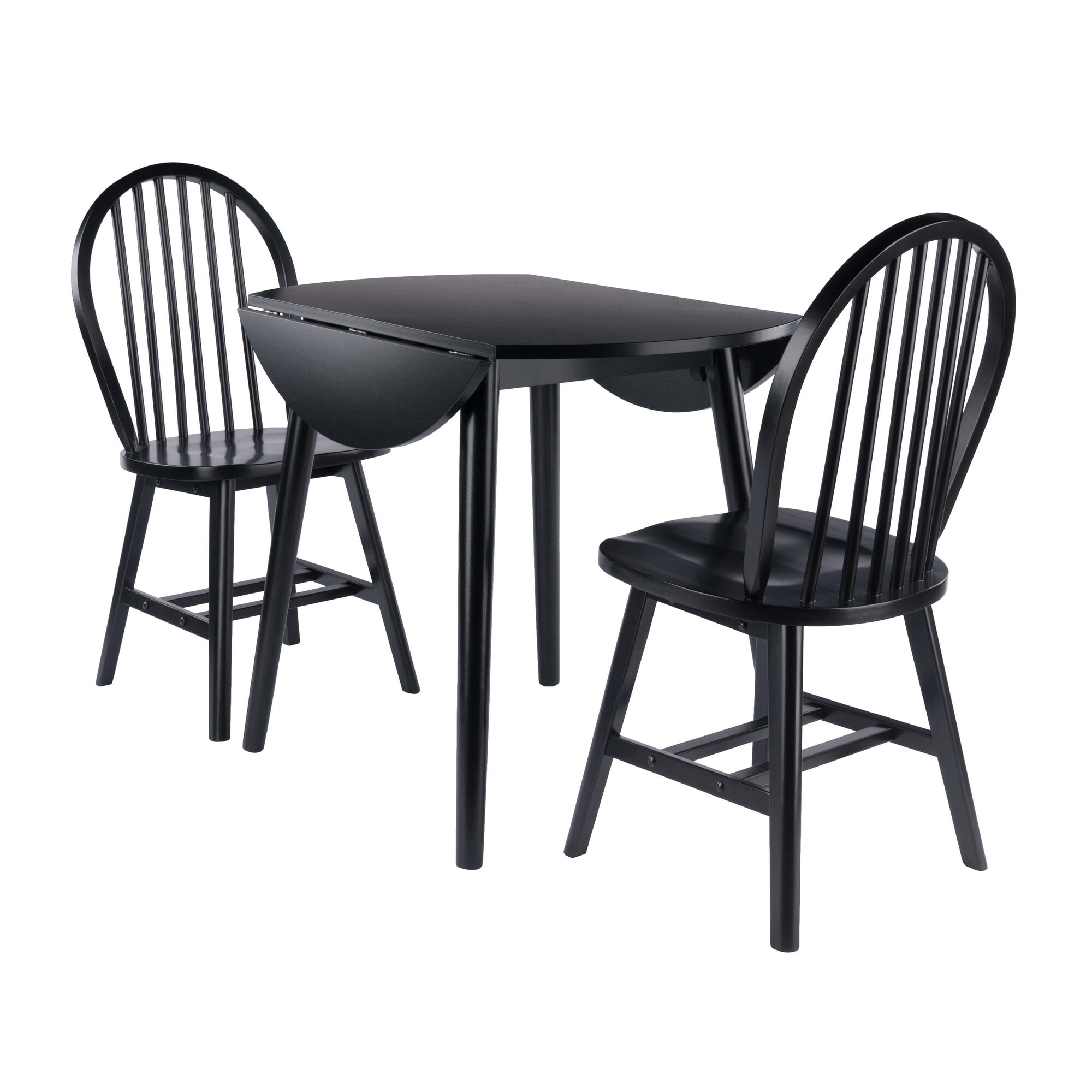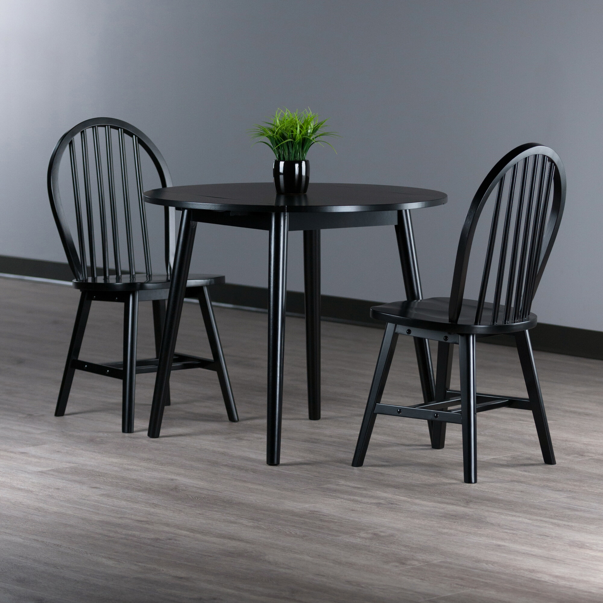 Moreno Extendable Round Dining Table with 2 Windsor Chairs, 35' Wide, Black