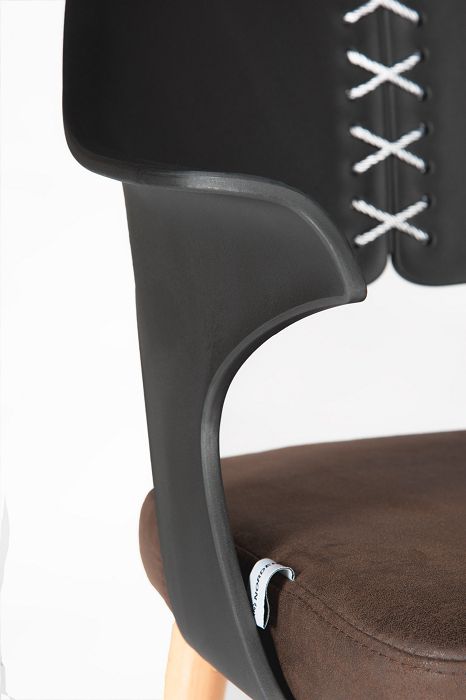 · The second thing that attracts attention almost immediately is the original shape of the backrest, which has COOL chair. Made of soft plastic, it is divided into two equal parts, connected by an original and durable white lacing. Despite its apparent fragility, this backrest is securely fixed and does not lose its shape. Very comfortable and wide armrests are also relevant, providing a comfortable position.