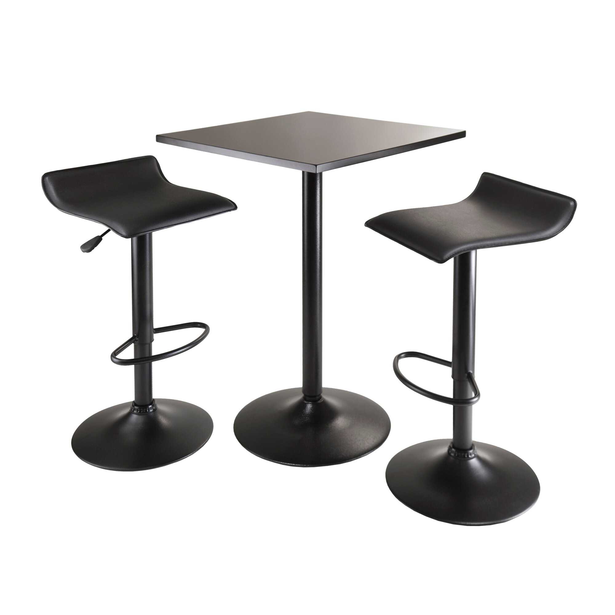 Obsidian 3-Pc Square Counter Height Table with 2 Adjustable Air Lift Stools, Black