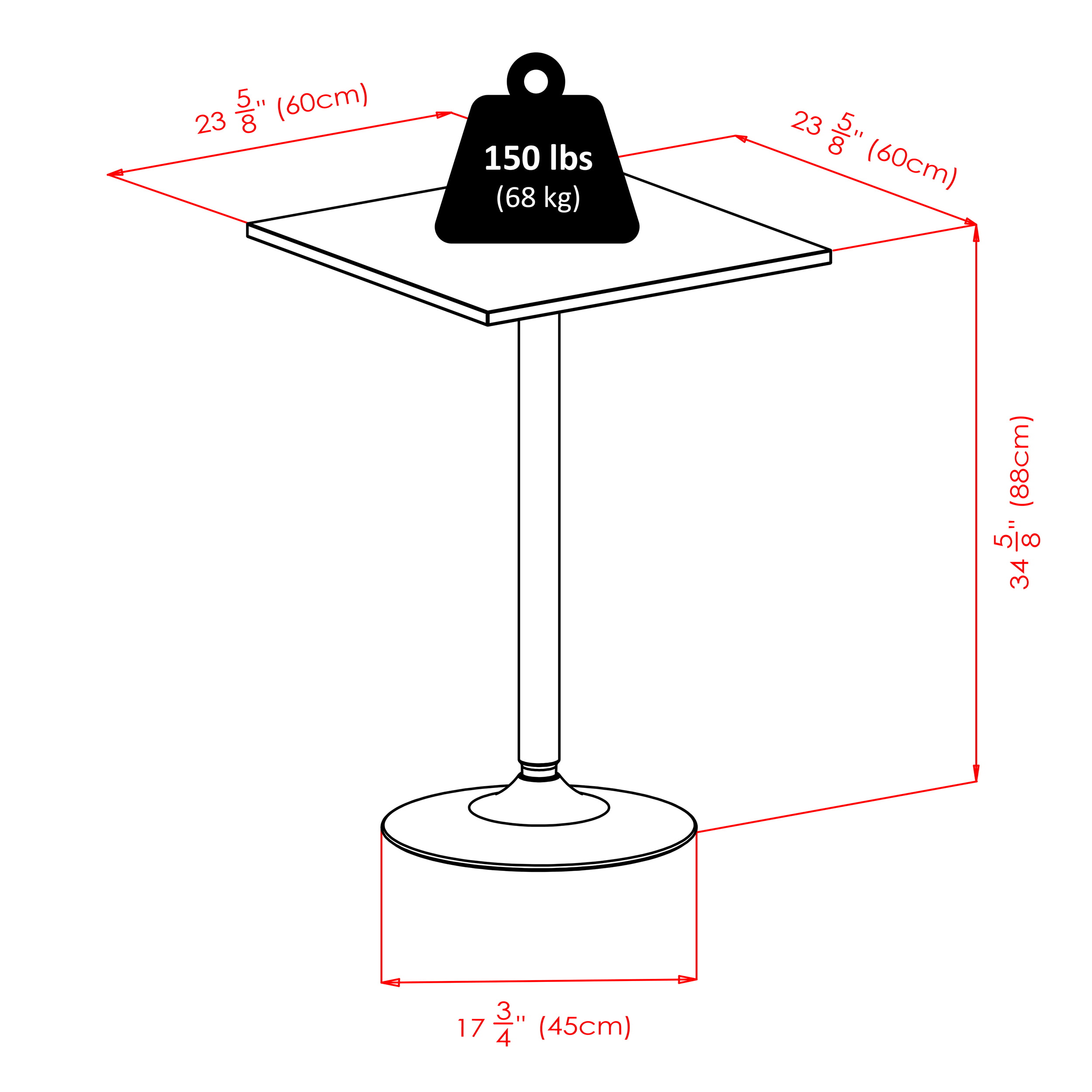 • Spacious table top holds up to 150 lbs. with even weight distribution