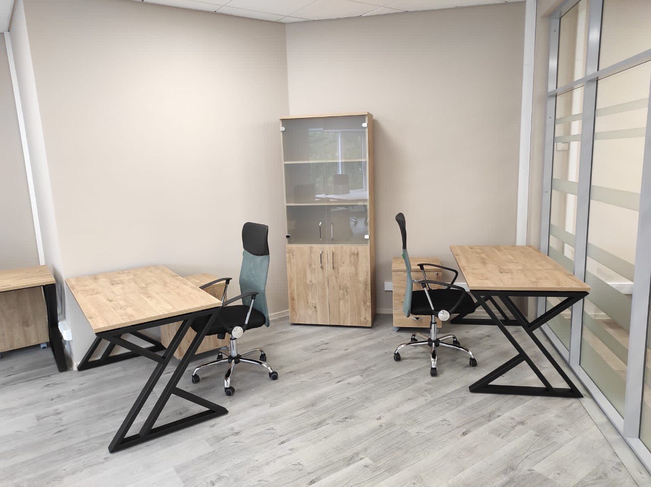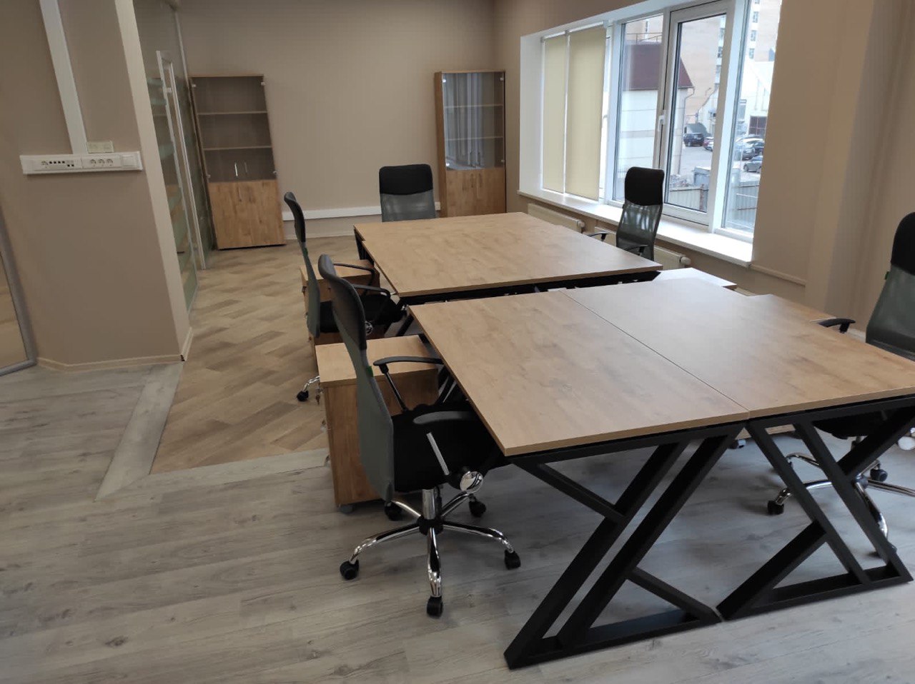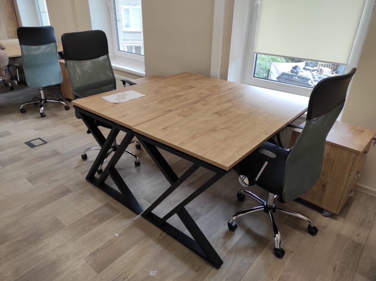 Для каждого рабочего места была выбрана мебель, отвечающая концепции Лофт. Столы на металлокаркасе с столешницей из ЛДСП и подкатными тумбами были установлены в соответствии с требованиями организации рабочего пространства для обеспечения максимального удобства работы с документами и личными вещами. Кресла с высокой спинкой, подголовником и эргономичными характеристиками были выбраны для обеспечения комфорта и правильной осанки сотрудников.