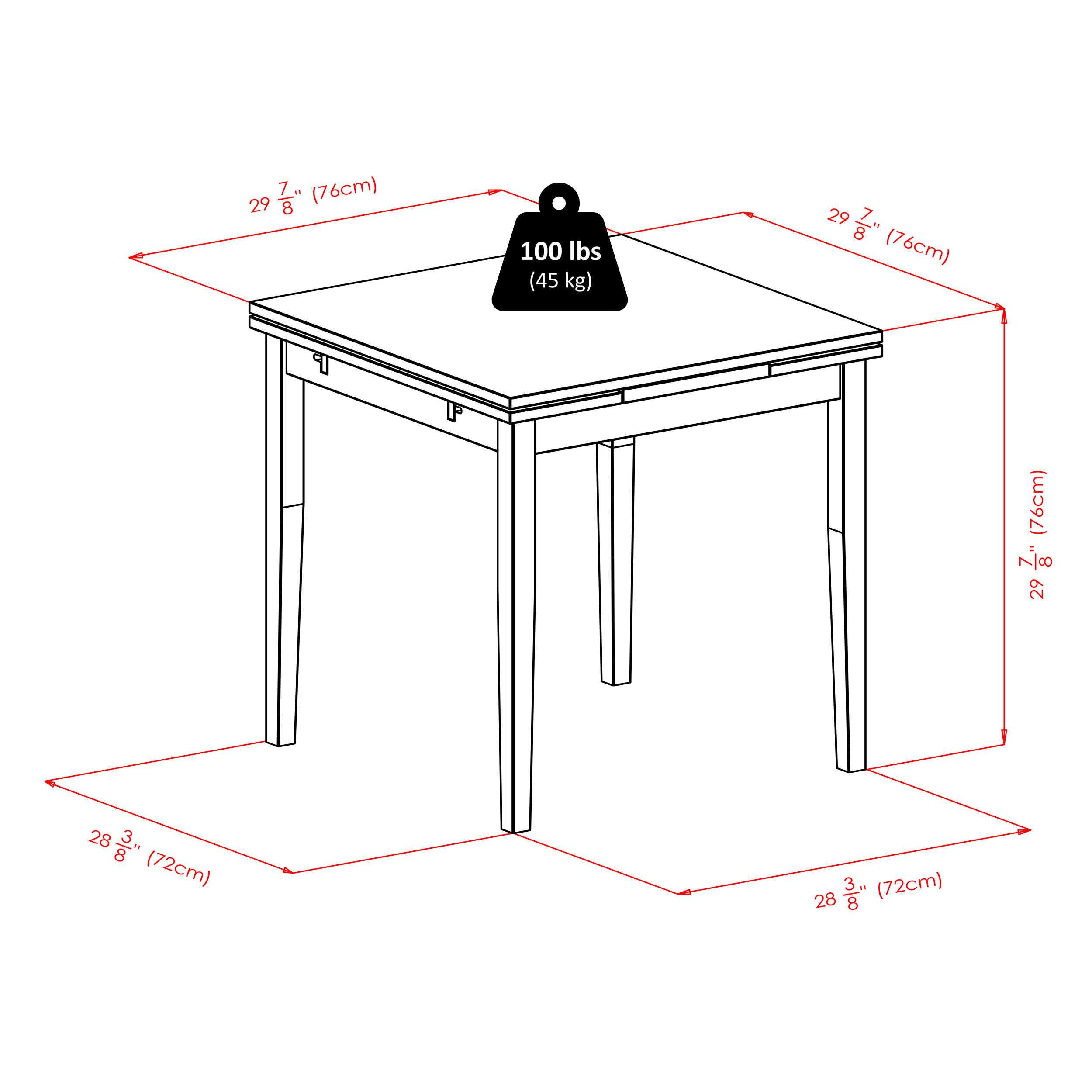 Table - 48.03 x 29.92 x 29.92 INChair - 16.54 x 18.63 x 34.65 IN