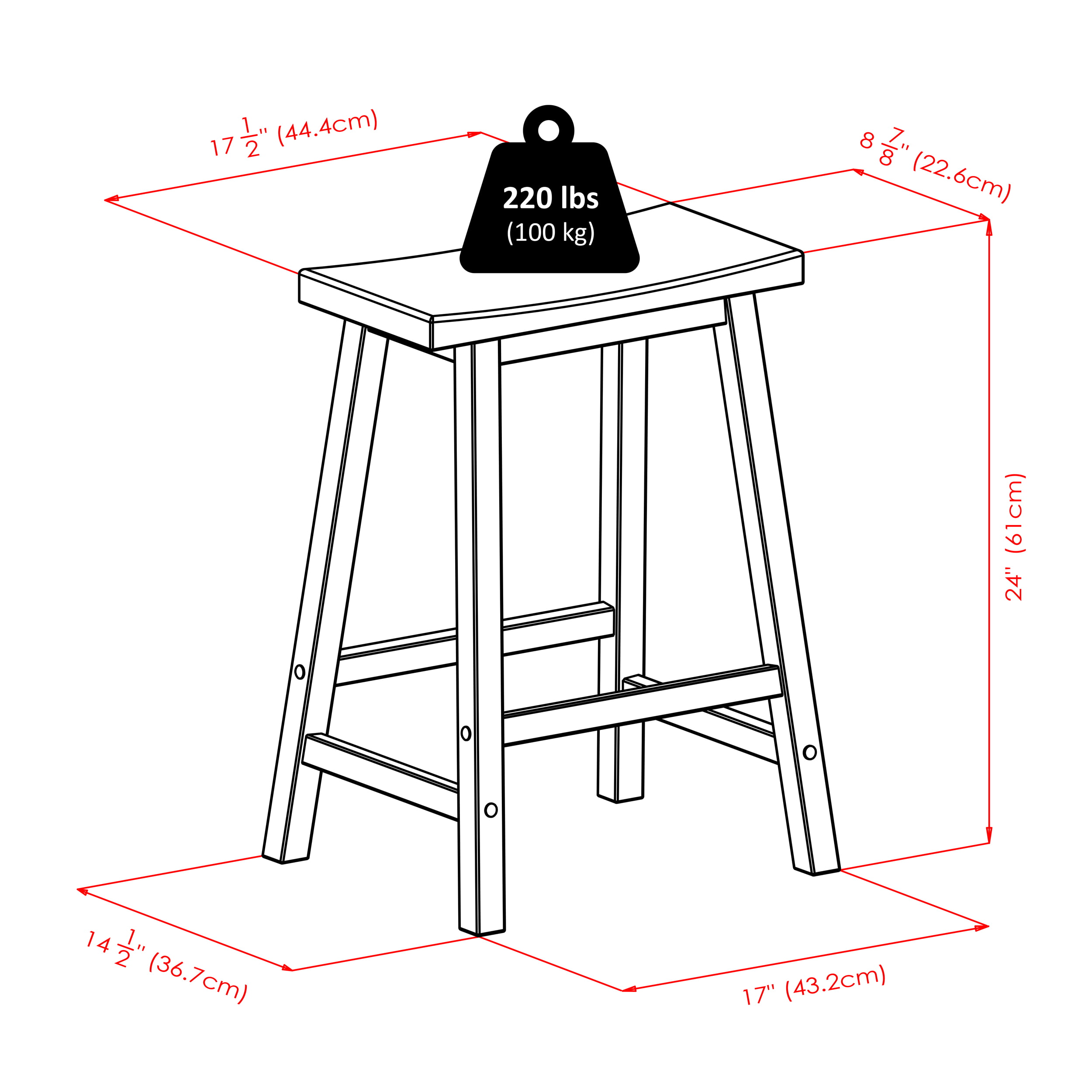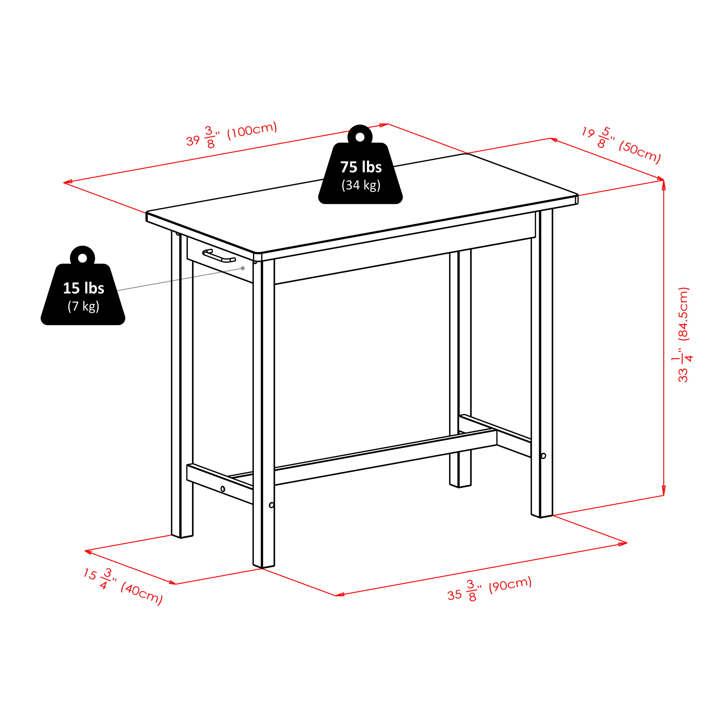 Table - 39.37 x 19.69 x 33.27 INStool - 17.48 x 14.47 x 24 IN