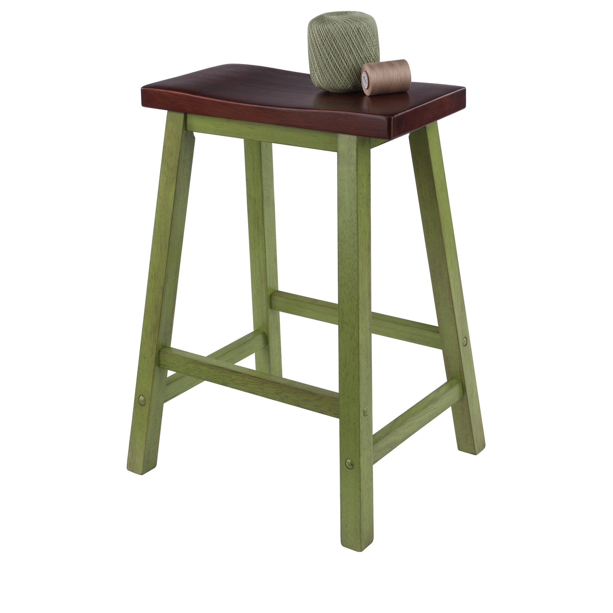 Satori Saddle Seat 24' Counter Stool, Rustic Green and Walnut