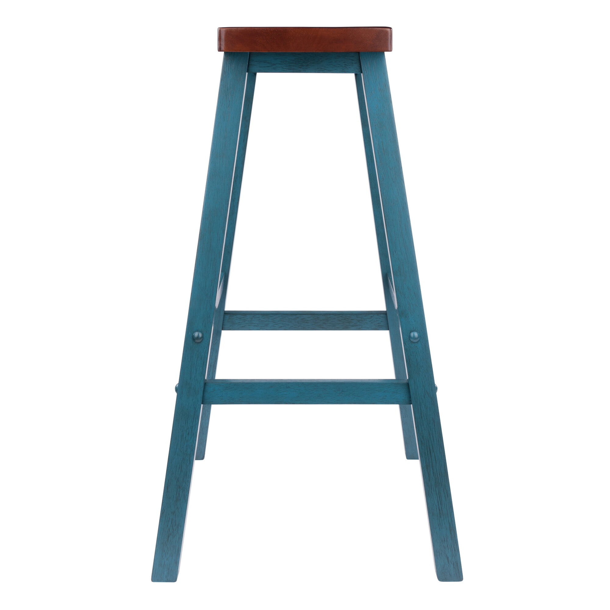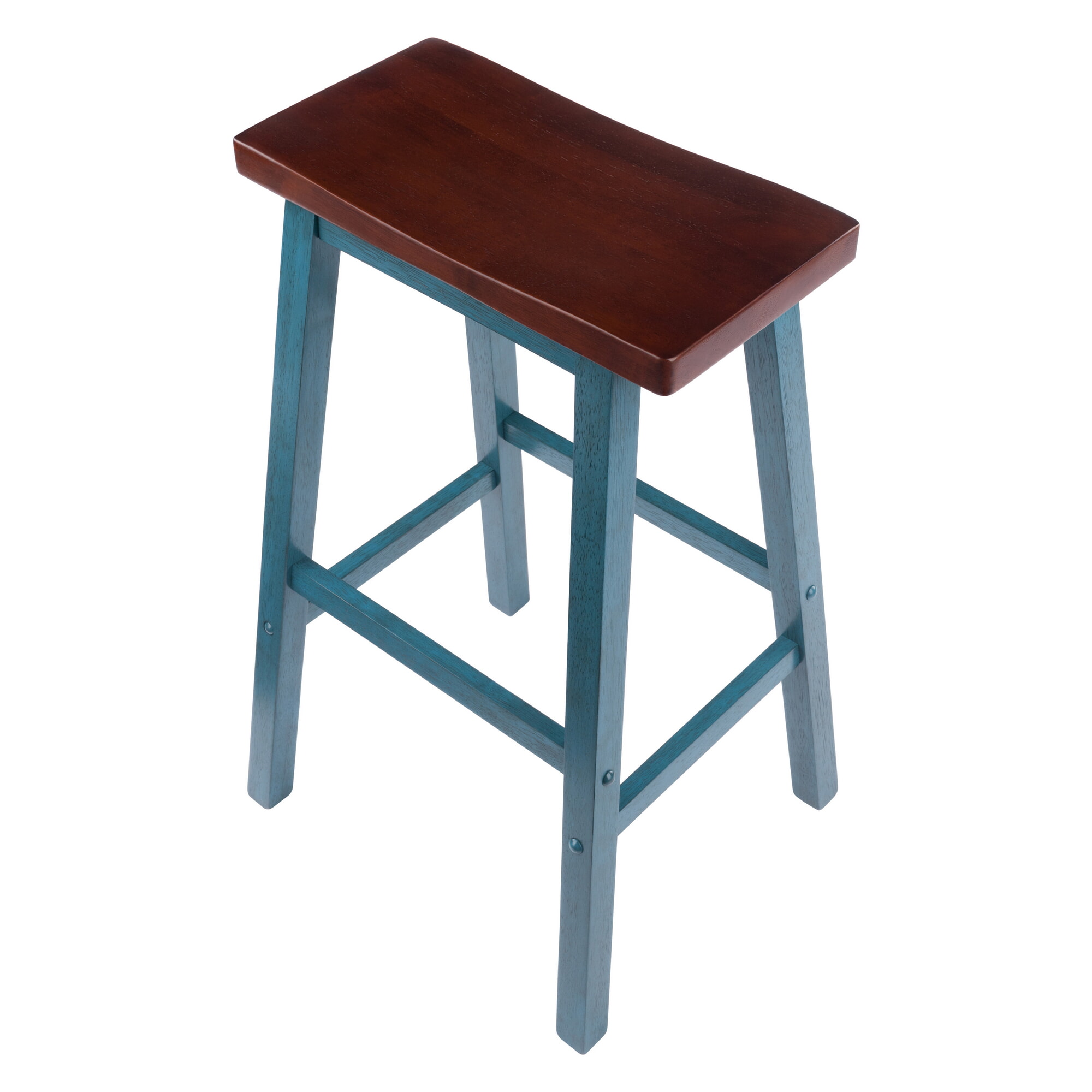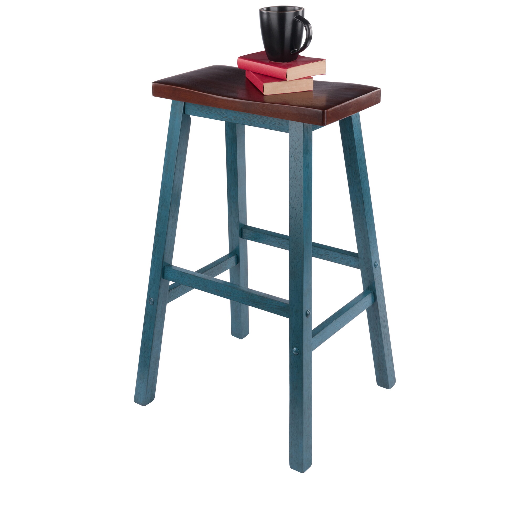 Satori Saddle Seat Bar Stool, Rustic Teal and Walnut