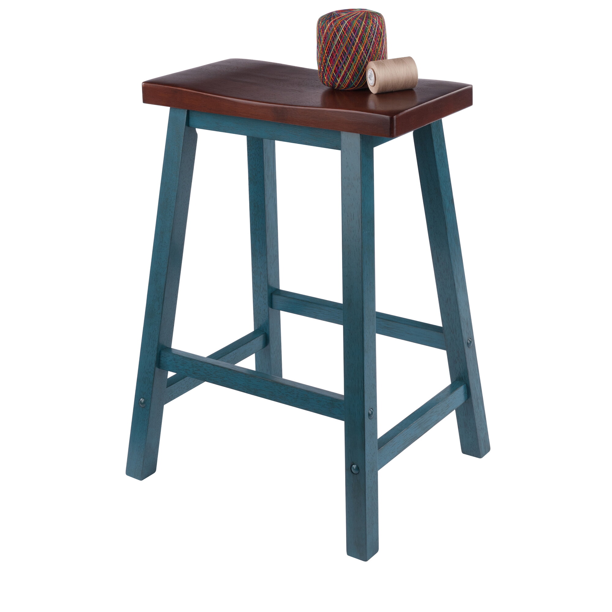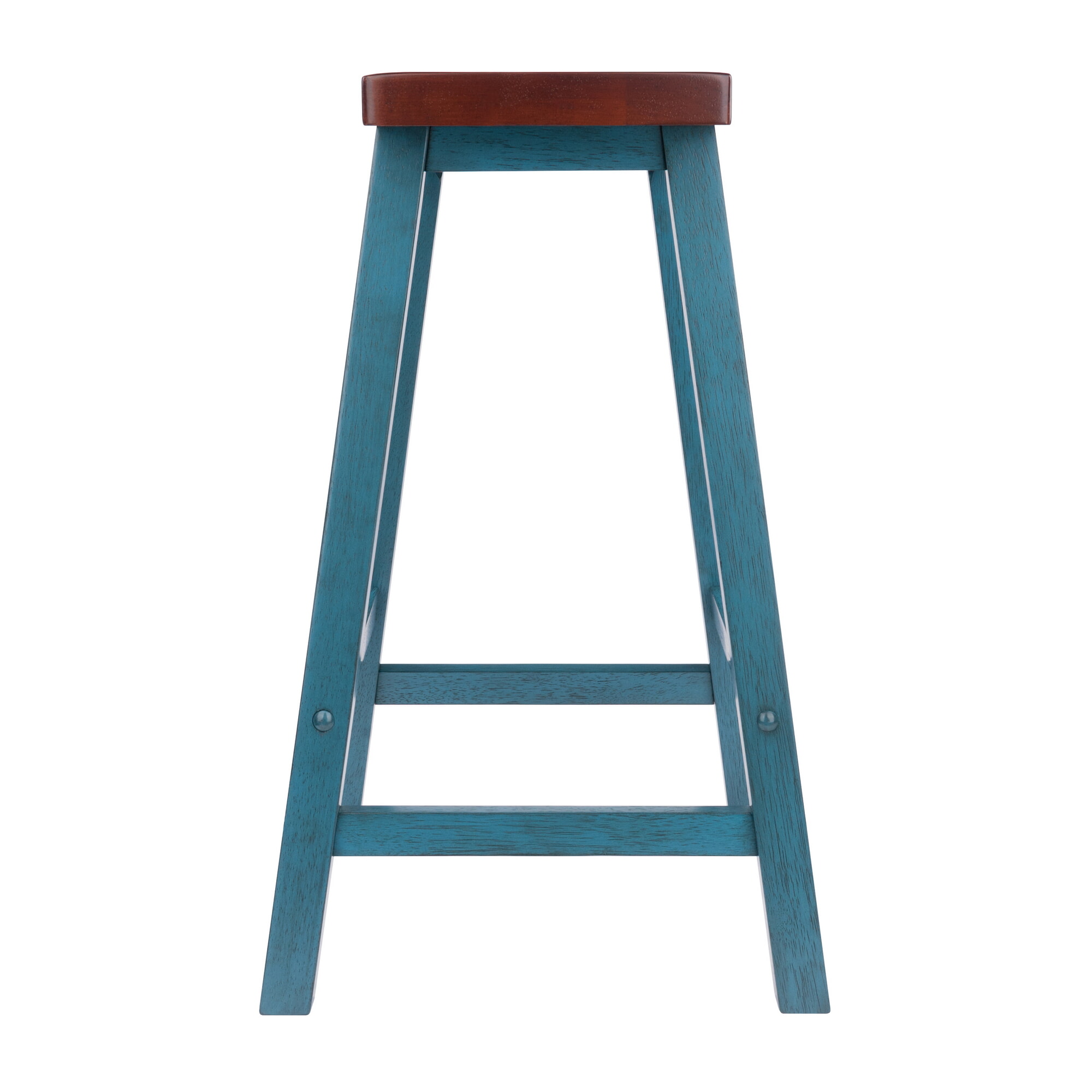 Satori Saddle Seat Counter Stool, Rustic Teal and Walnut