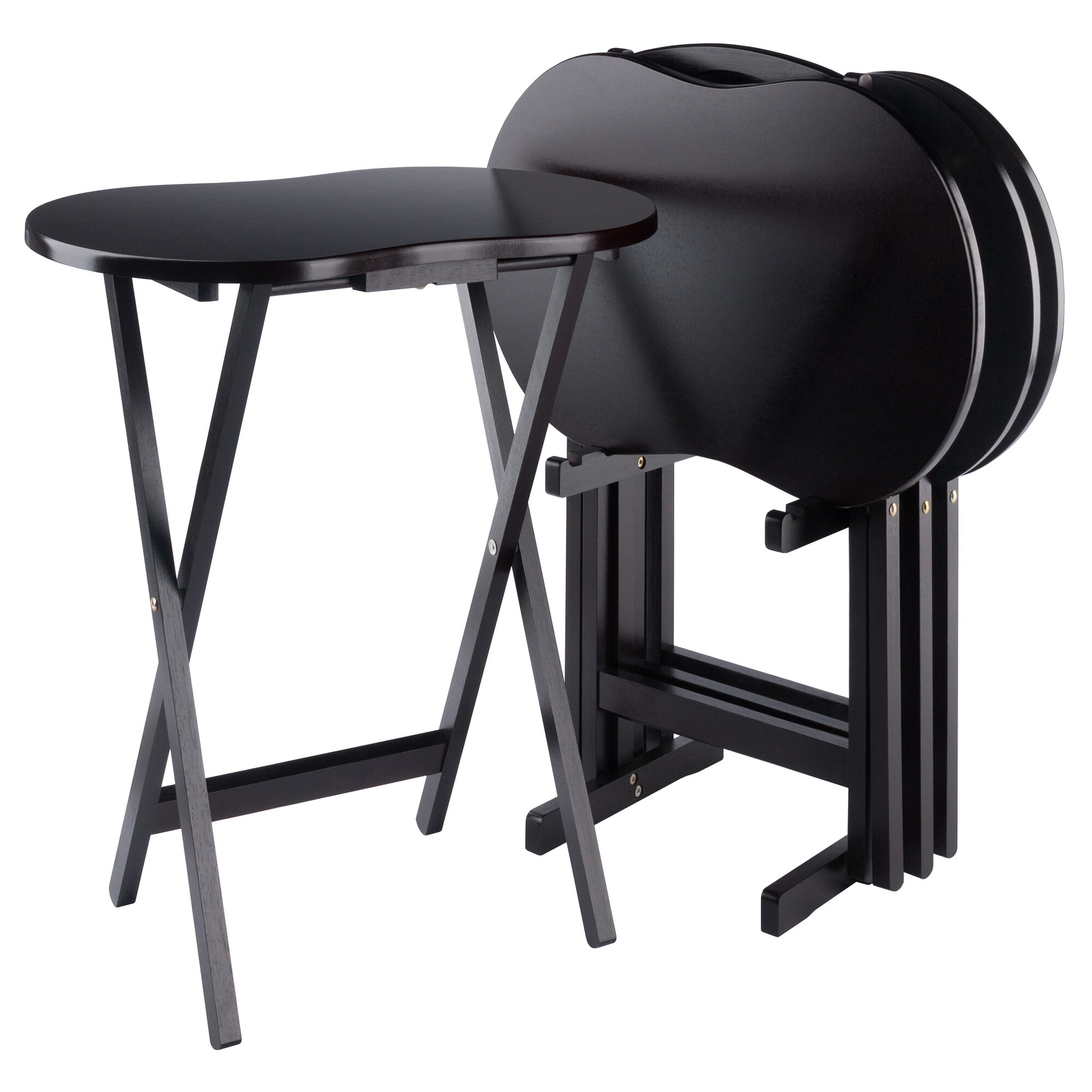 • Includes standing rack to neatly store tables when not in use