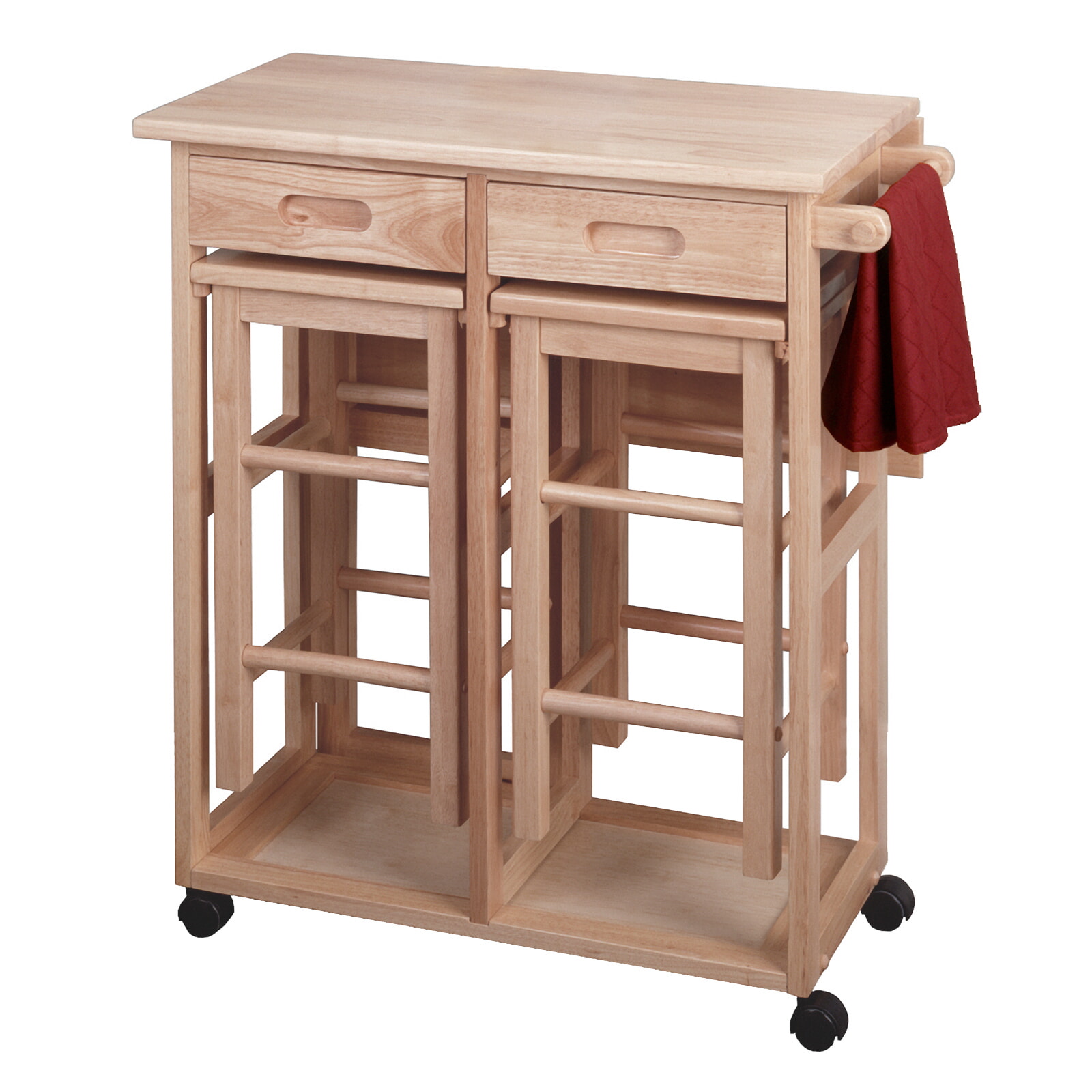 Suzanne Kitchen Space-Saver Table Set with 2 Tuck-Away Stools, 33' Tall, 29' Long, 30' Wide, Beech