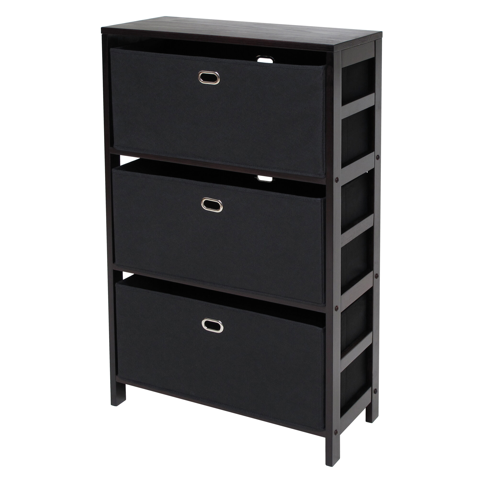 Torino 4-Pc Storage Shelf with 3 Foldable Fabric Baskets, Espresso and Black